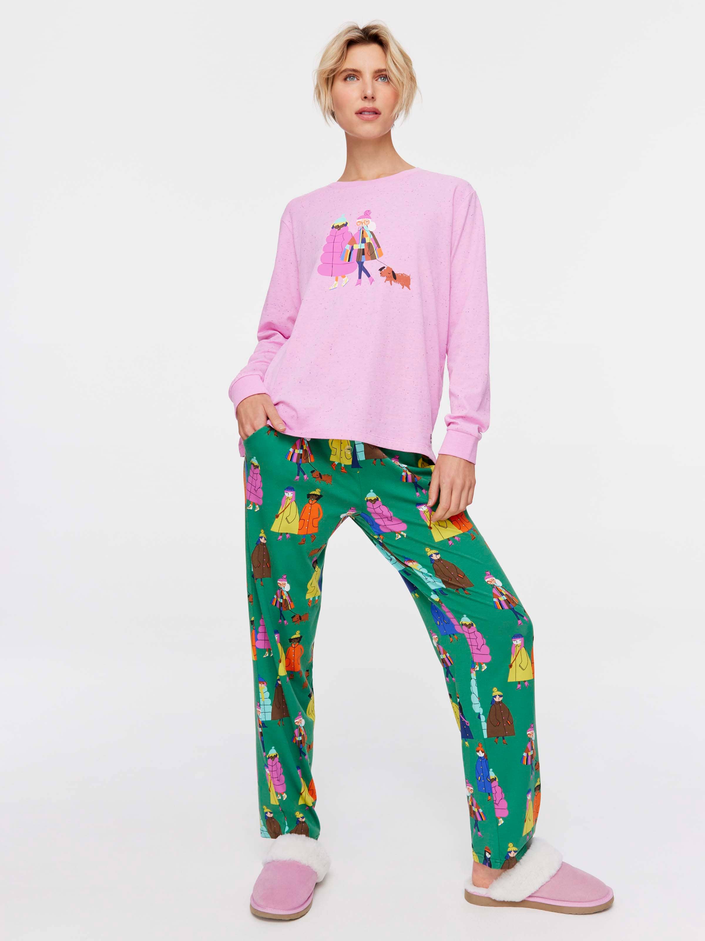 For the dog mums that battle winter's coldest days for the sake of your pooch! This women's jersey sweater features speckle detailing with a sweet dog walker print.?