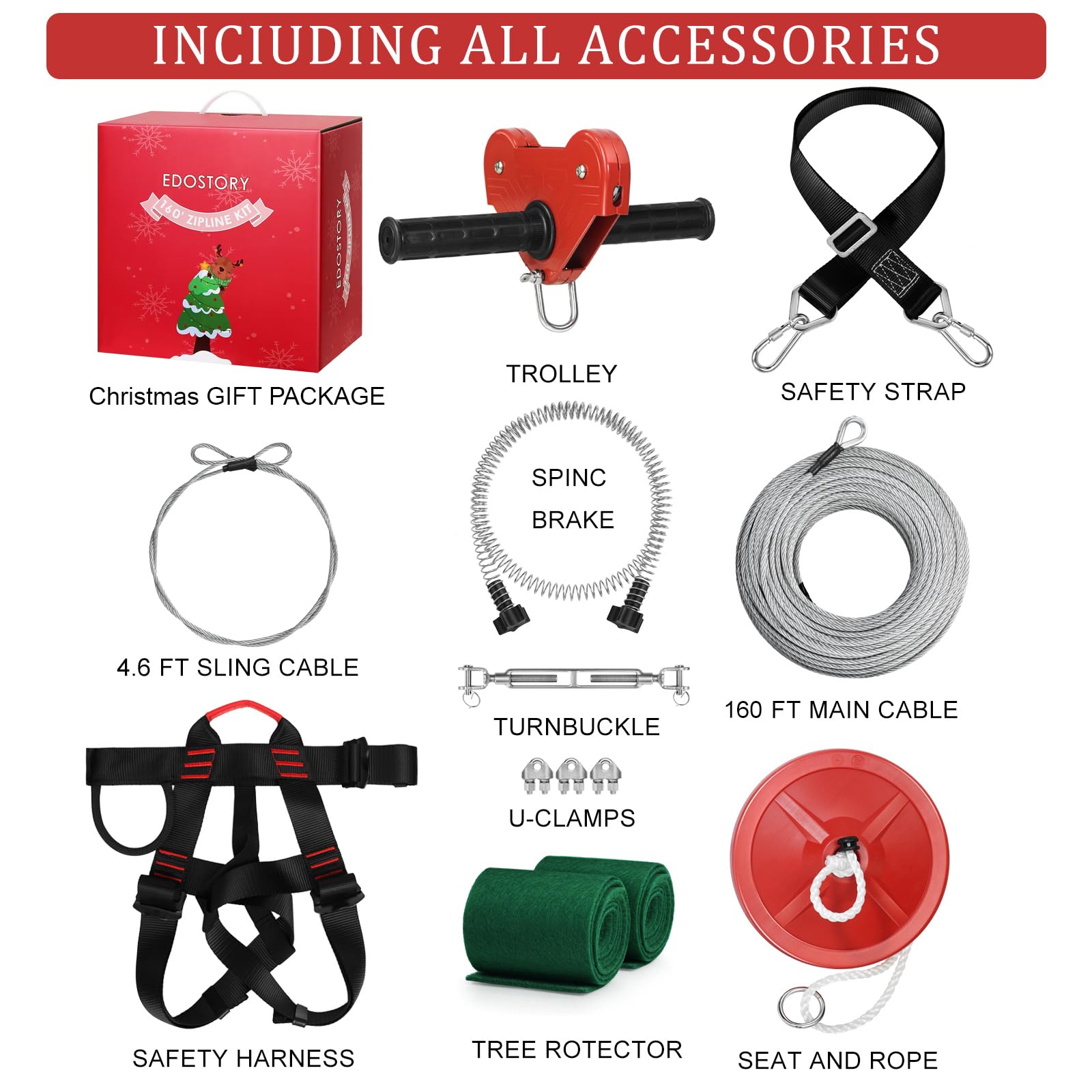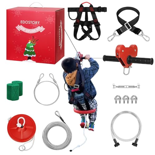 - Easy to Assemble - Edostory zipline kits for backyard are partly assembled. All you need to do is find two sturdy trees, wrap them around, and let your kids straddle the seat, grab the handles, and go. Then you can have endless hours of backyard fun with your little ones.