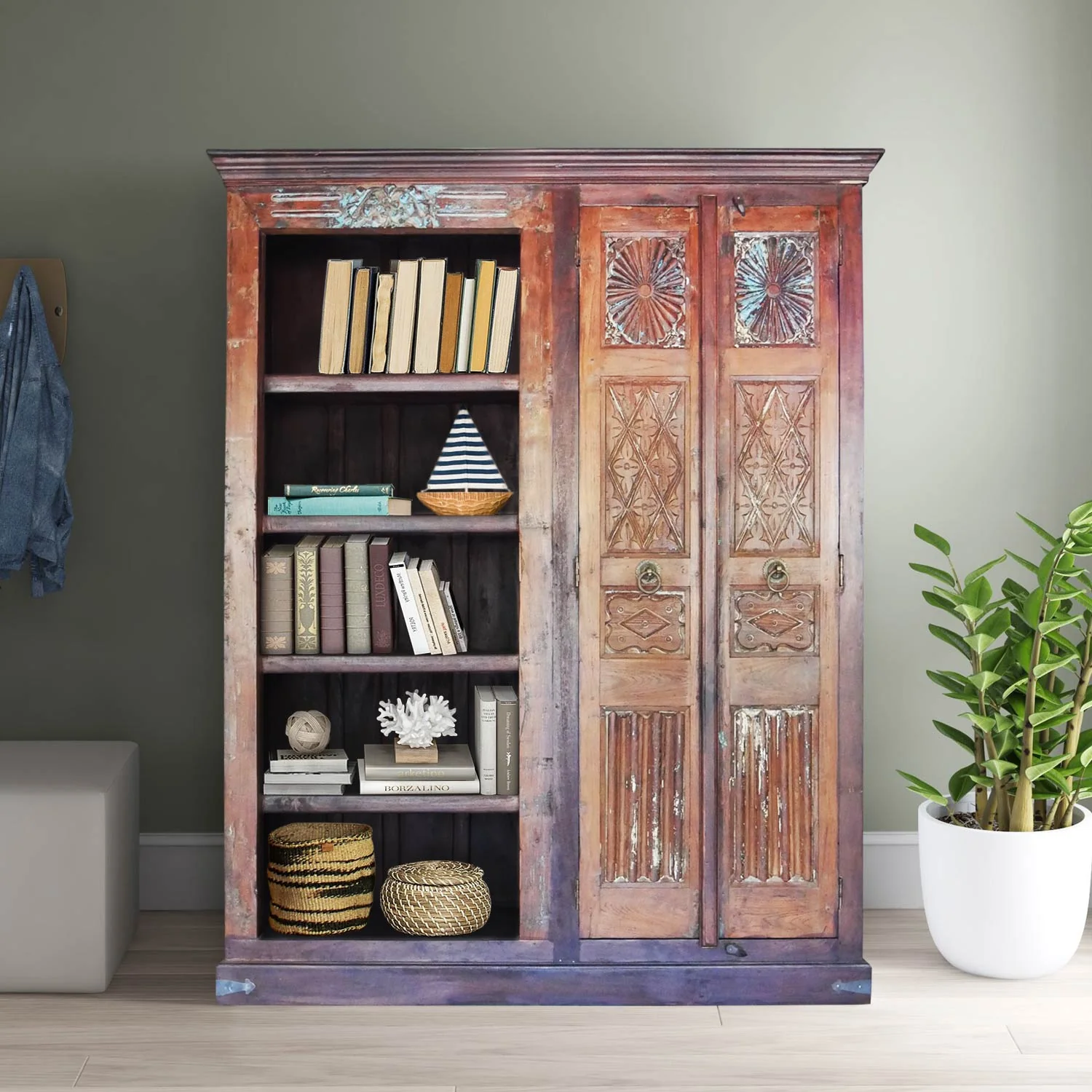 Tell the story of your home and personality through this beautiful bookcase. Hand-carved antique door from the early 1900s has been repurposed to craft this solid wood bookcase making it a unique piece of art to adorn your interiors.