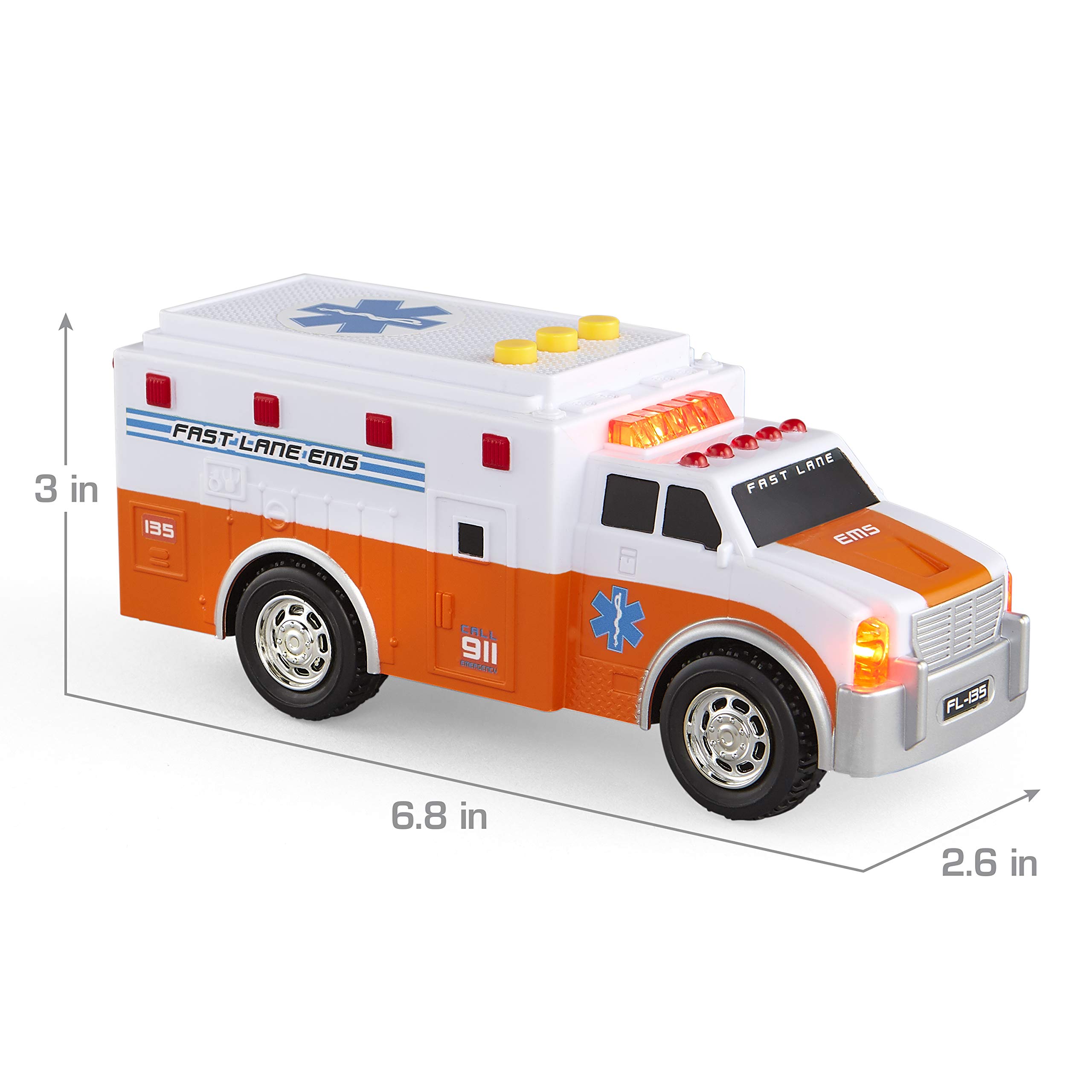 - Set of 3 Emergency Rescue vehicles including a Fire Engine, Ambulance and Police Car. Each vehicle includes realistic light and sound features.