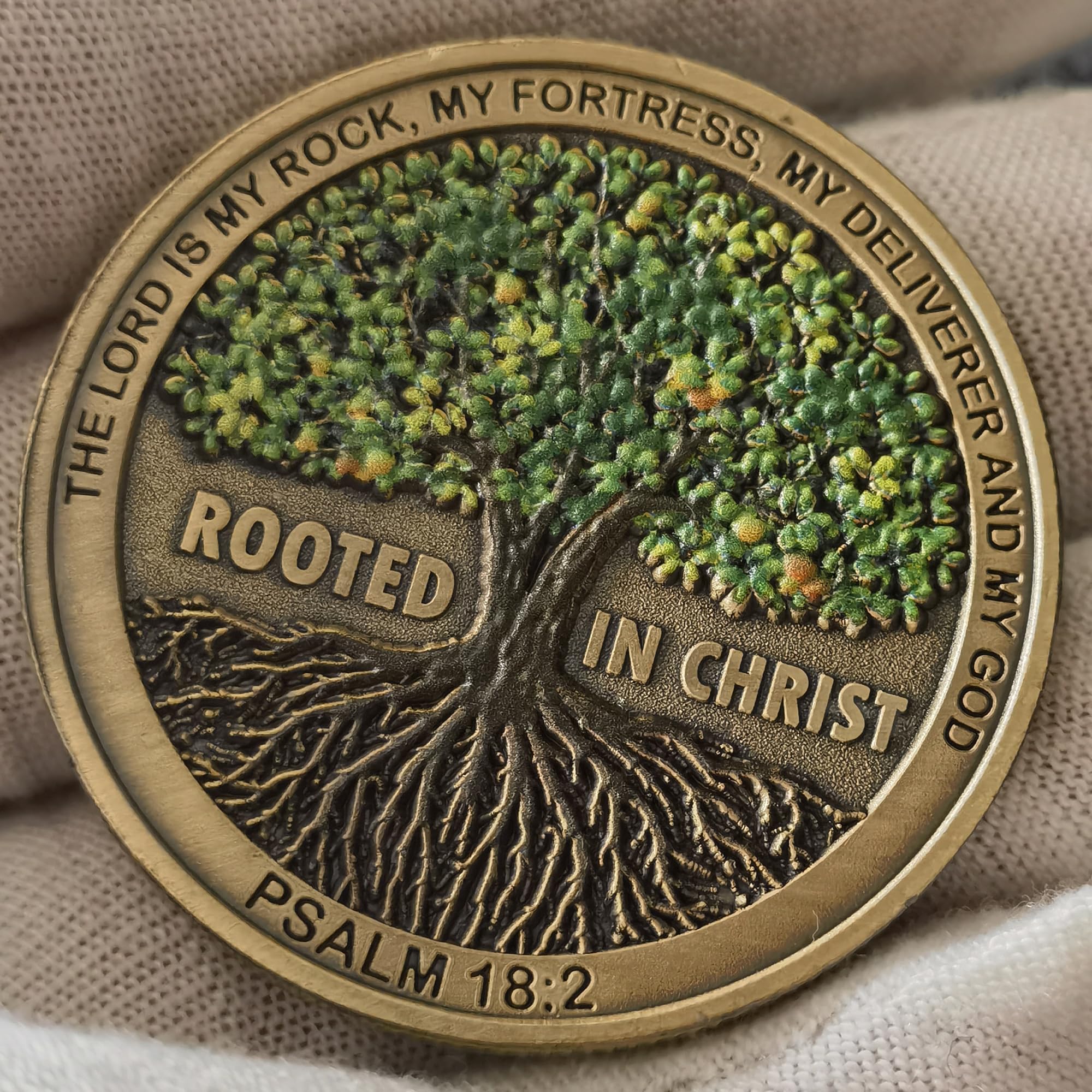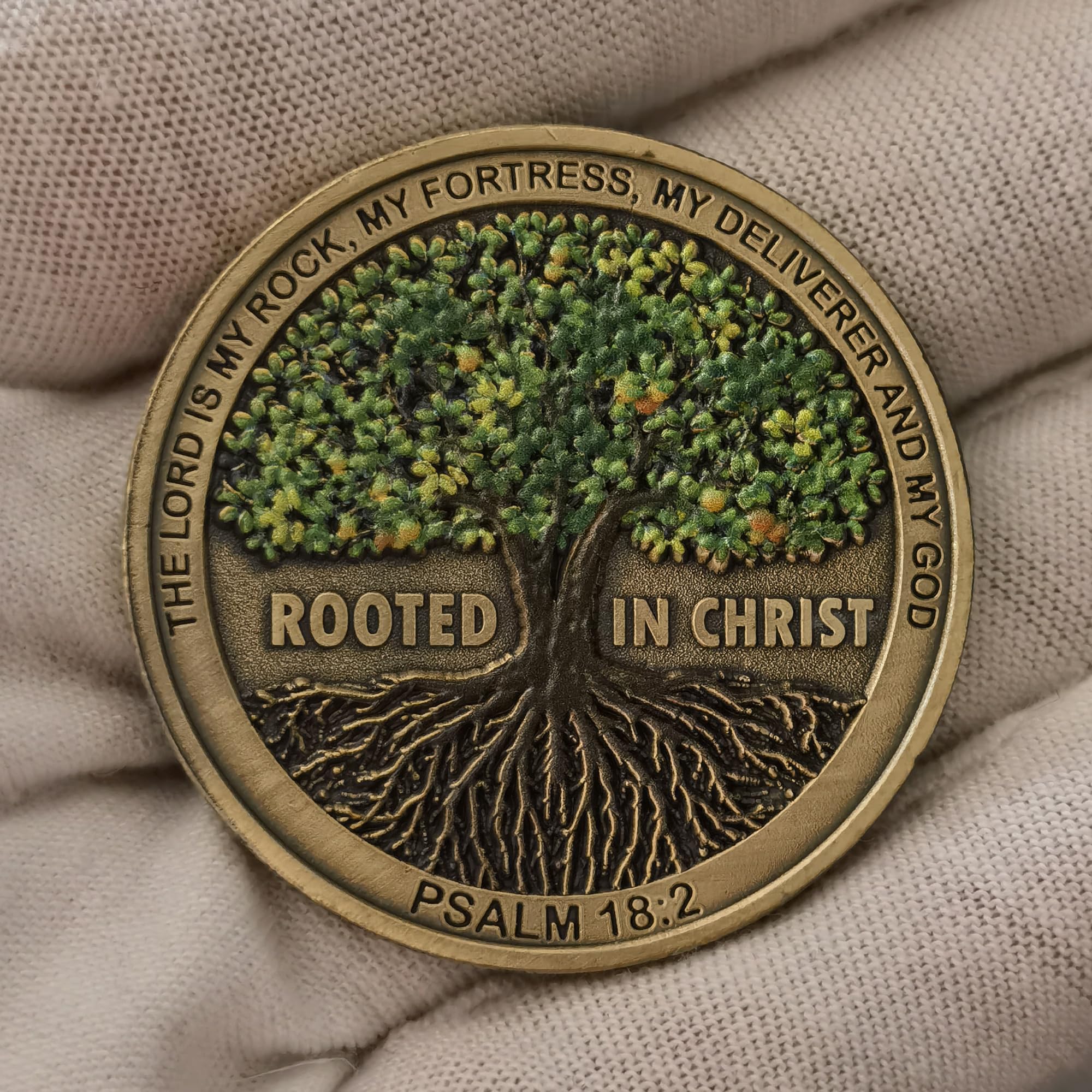 - u27a4With a profound verse from Deuteronomy 31:8 engraved, the coin fosters a tangible bond to the scripture's wisdom. The front displays a grand tree complemented by the inscription "ROOTED IN CHRIST" and the uplifting phrase "THE LORD IS MY ROCK, MY FORTRESS, MY DELIVERER AND MY GOD - PSALM 18:2". The flip side etches a divine assurance: "'THE LORD HIMSELF GOES BEFORE YOU AND WILL BE WITH YOU; HE WILL NEVER LEAVE YOU NOR FORSAKE YOU. DO NOT BE AFRAID; DO NOT BE DISCOURAGED - DEUTERONOMY 31:8".