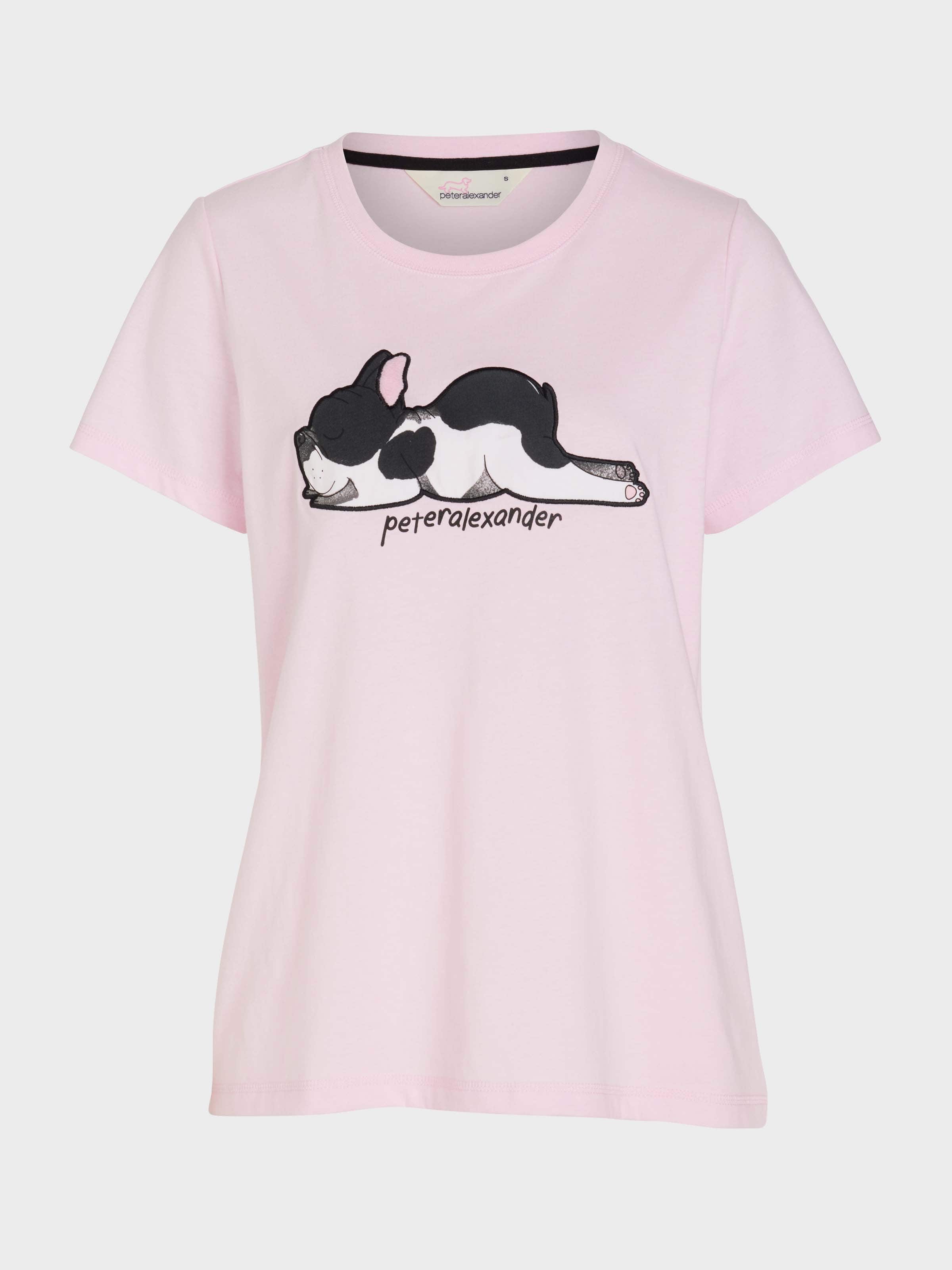 Pardon our French-ie! This oversized women's tee features an adorable French Bulldog print and pairs perfectly with the matching shorts and pants.?