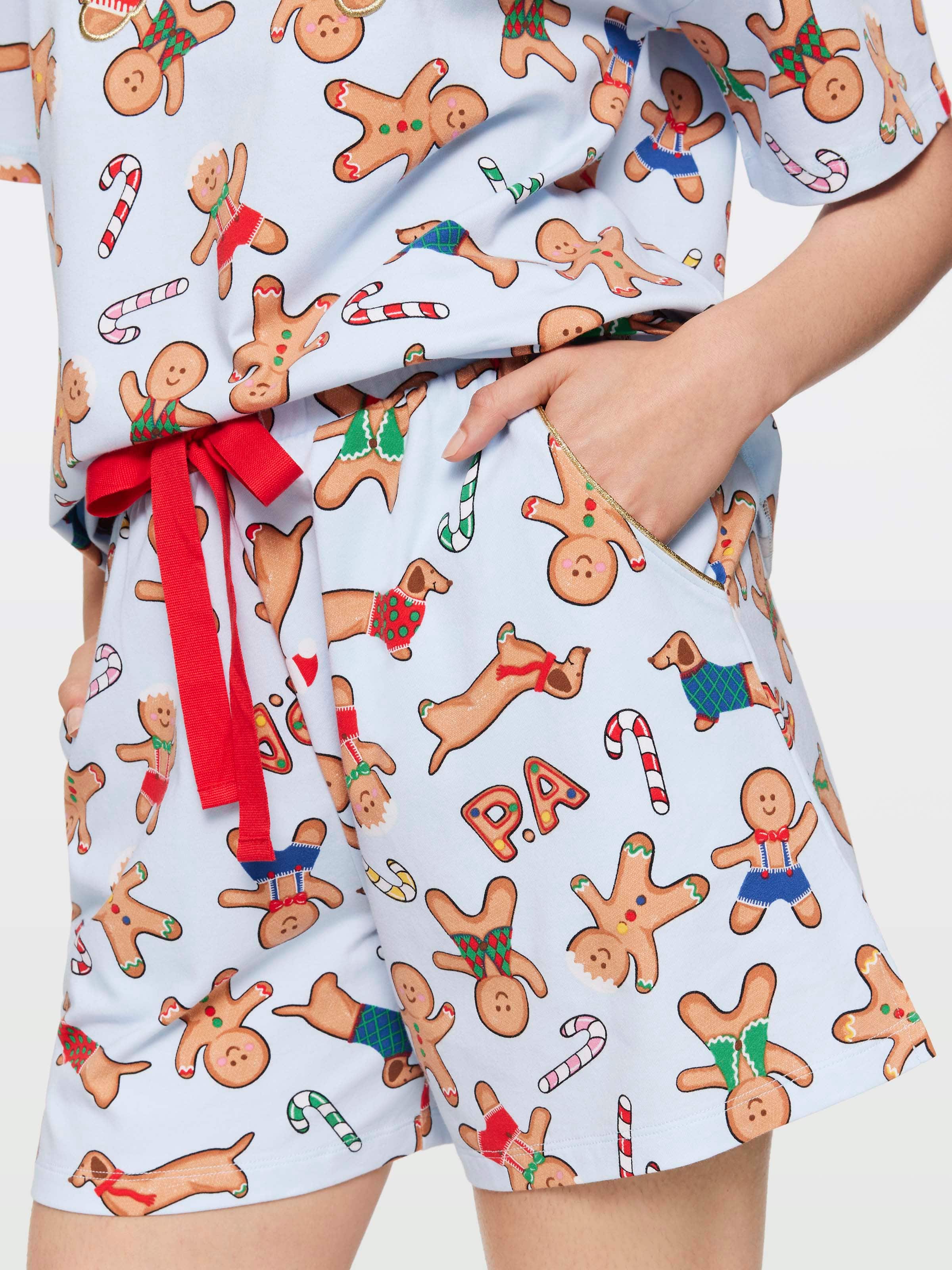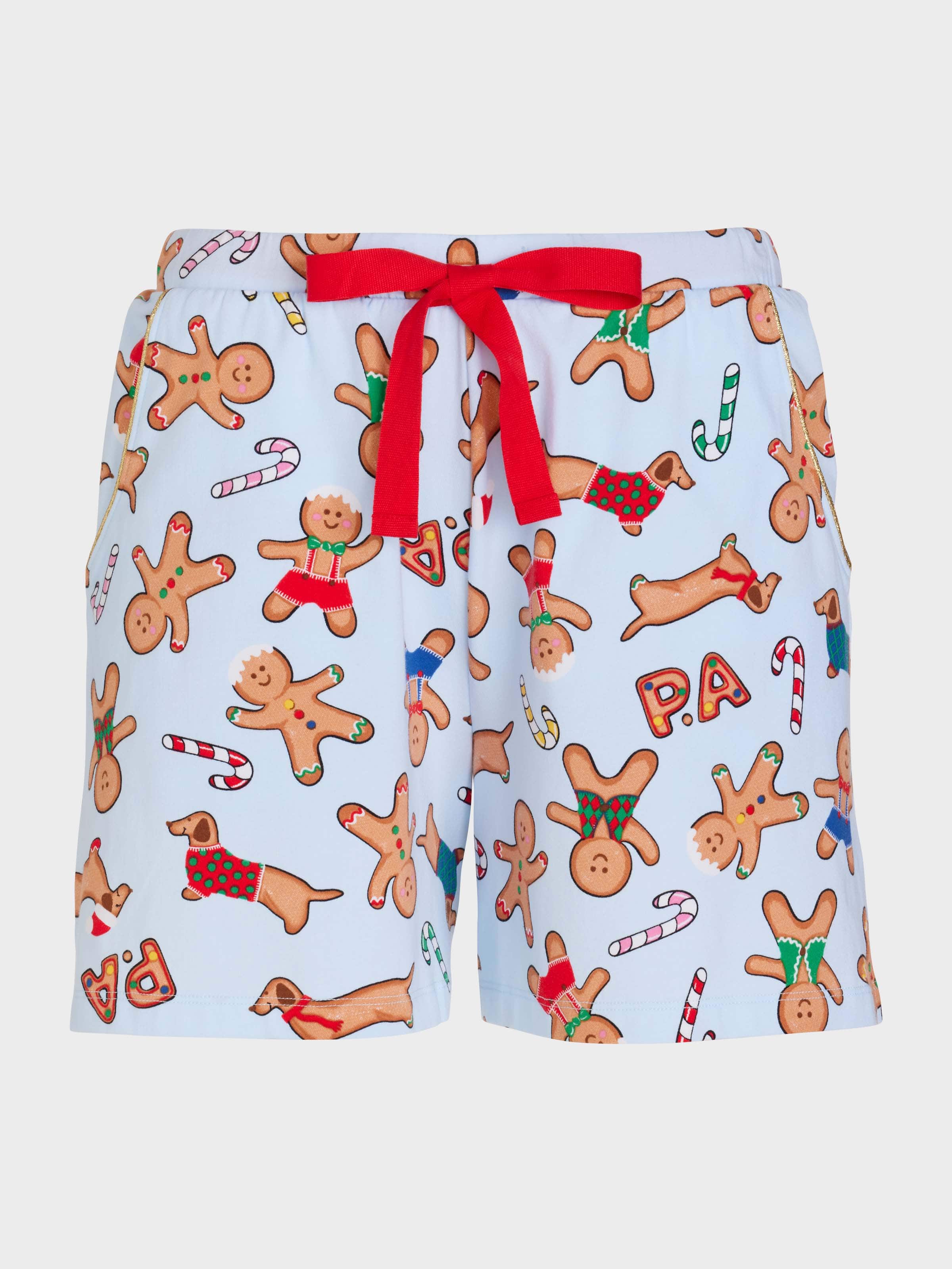 Make Christmas even sweeter this year with our Gingerbread long short! This style features adorable penny dogs, gingerbread men and candy canes on a soft blue background- and pairs perfectly with the matching print tee.??