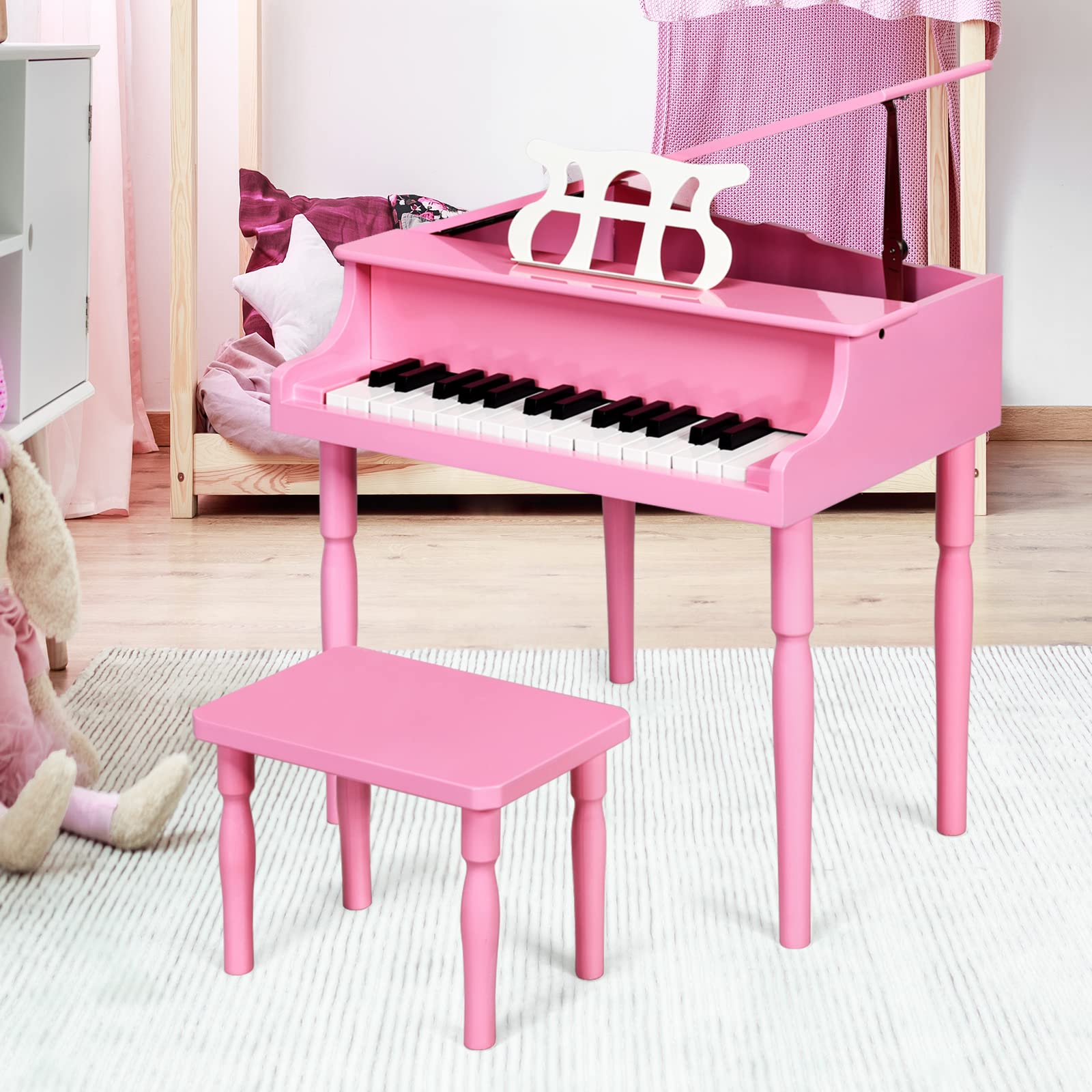 - ud83cudfb9u3010Great Educational Musical Instrumentu3011 Exquisite craftsmanship endows this piano's classical appearance and pleasant sound, which will attract kidu2019s attraction at first sight. Thanks to the music stand and comfortable bench, children can enjoy an immersive musical experience and play with this keyboard instrument with ease.