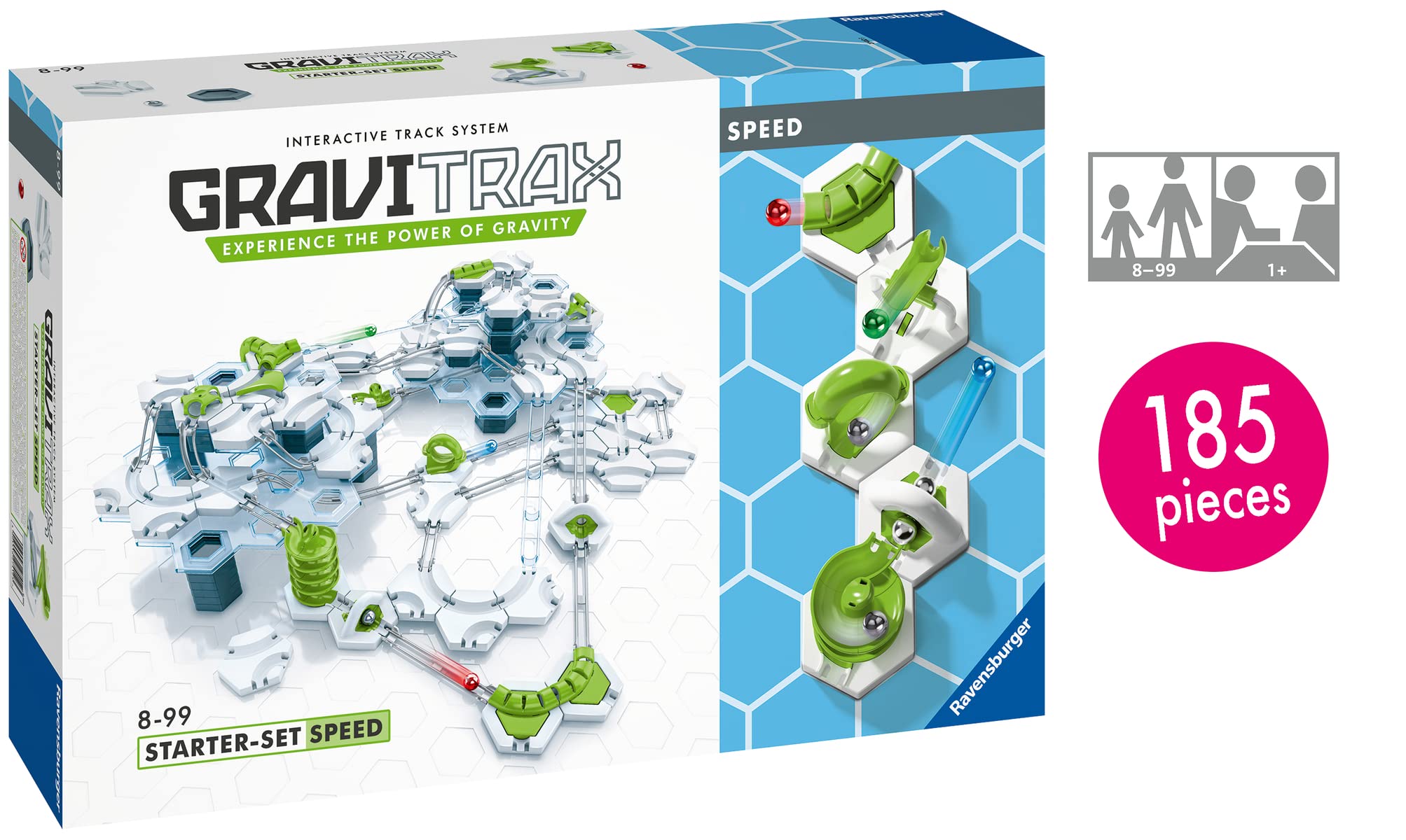 - [GraviTrax Speed Set] Feel the need for speed? Get the u201cGraviTrax Speed Starter-Setu201d and watch your marbles soar! This set includes 185 pieces to help build your Marble run.