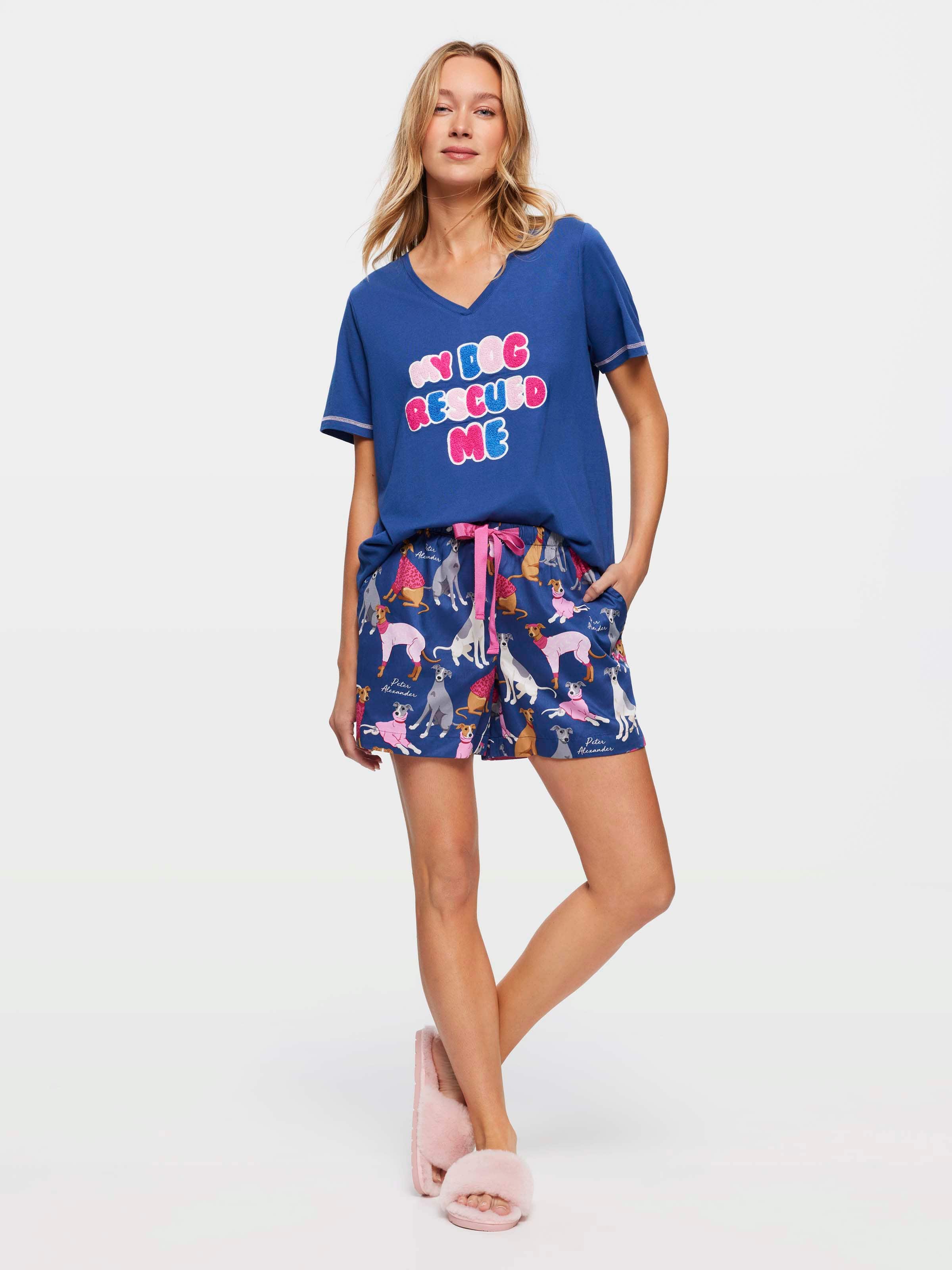 PJs for you, PJs for your pets! These women's long PJ shorts feature an adorable greyhound print to celebrate our favourite long-necked furry friends.