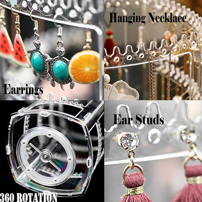 HOLDS 78 PAIRS – The 4 tiers has 156 easy access holes so it will display a total of 78 pairs (or 156 single earrings). 160 grooves will display necklace, bracelet, or ring.It works well as a dangle or stud earring organizer.