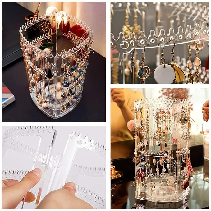 Package Includes: 1 *Rotating jewelry storage rack/1 *Multi-layer foldable jewelry storage box