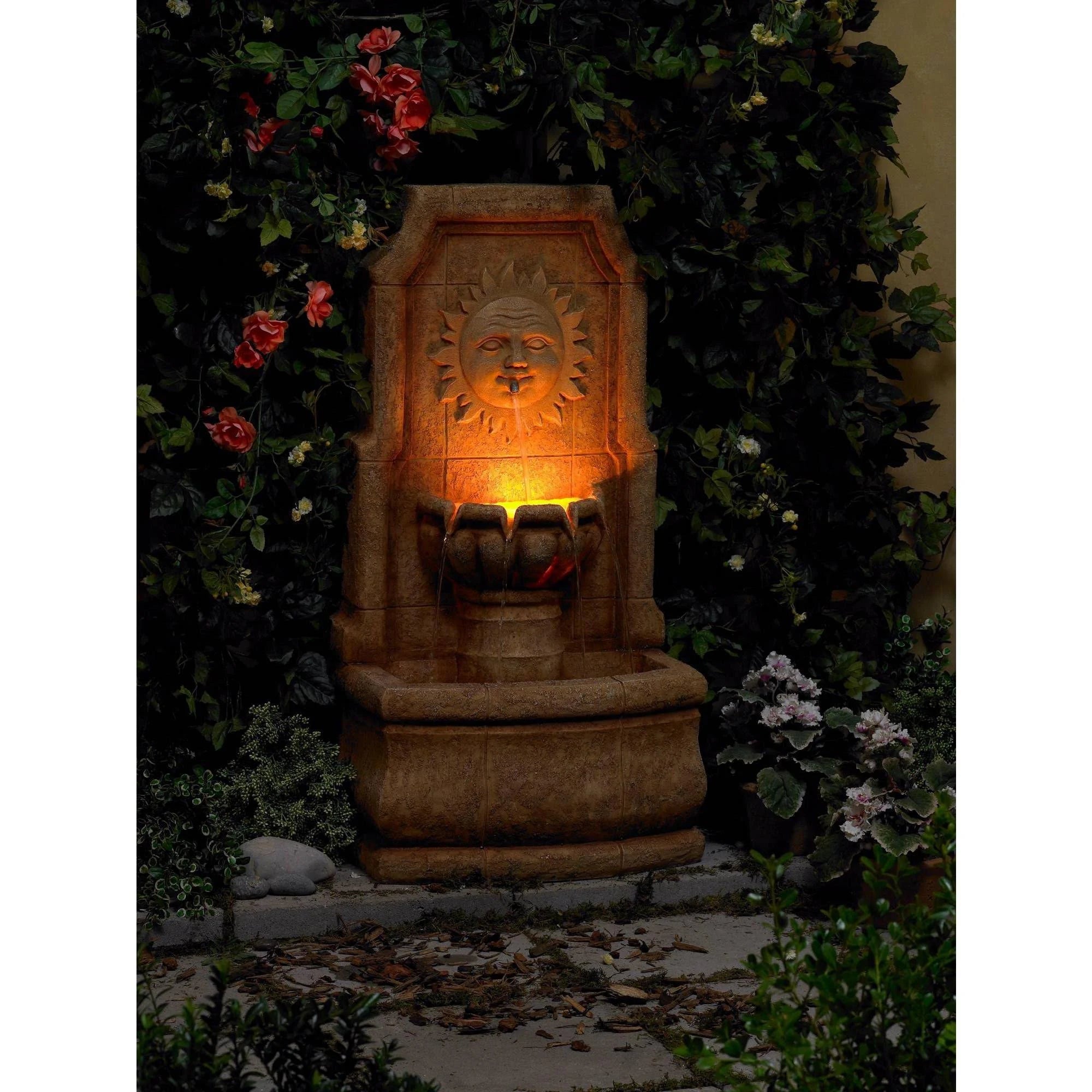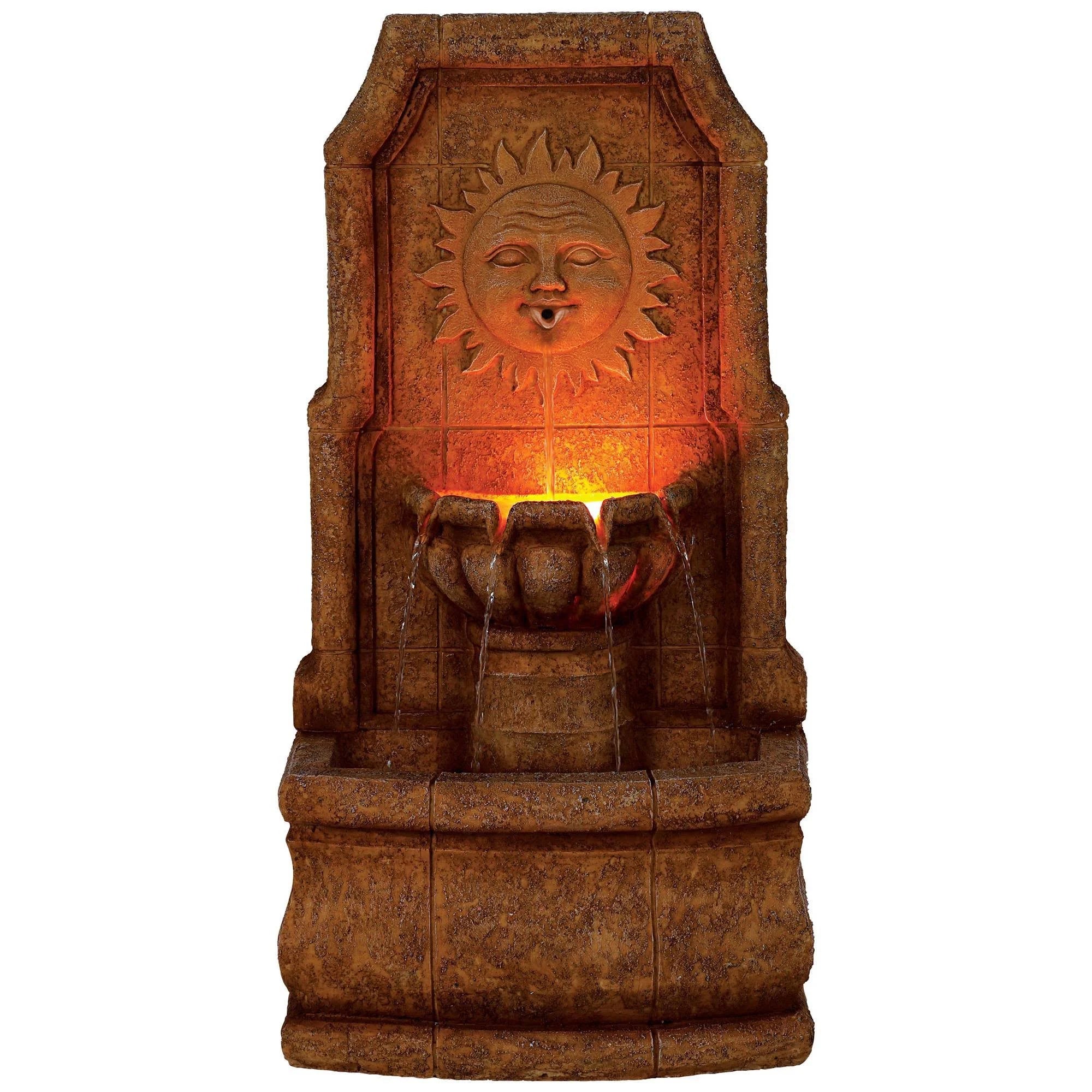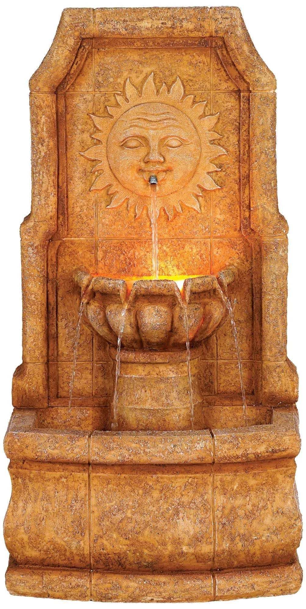 11John Timberland Sun Villa Outdoor Wall Water Fountain with Light LED 37" High 2 Tiered for Yard Garden Patio Deck Home