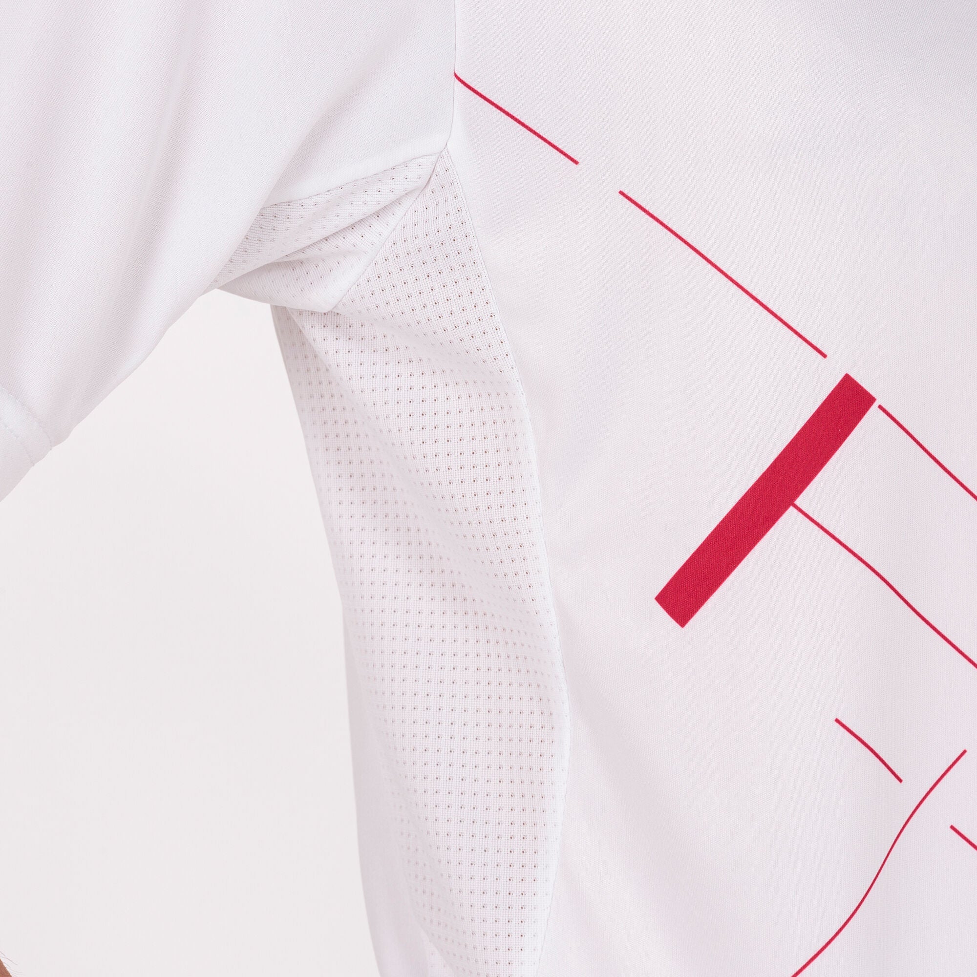 V-neck jersey with raglan sleeves for ease of movement. Incorporates Micro-Mesh technology in underarms and sides to provide optimal breathability. Sublimated print front and logo.