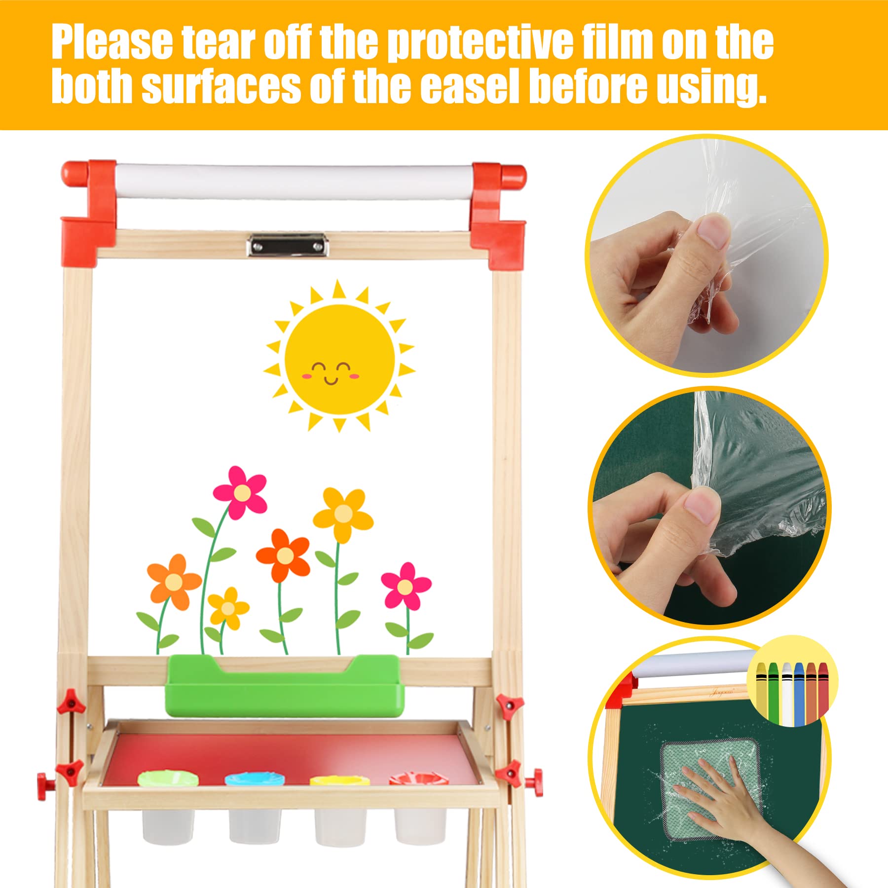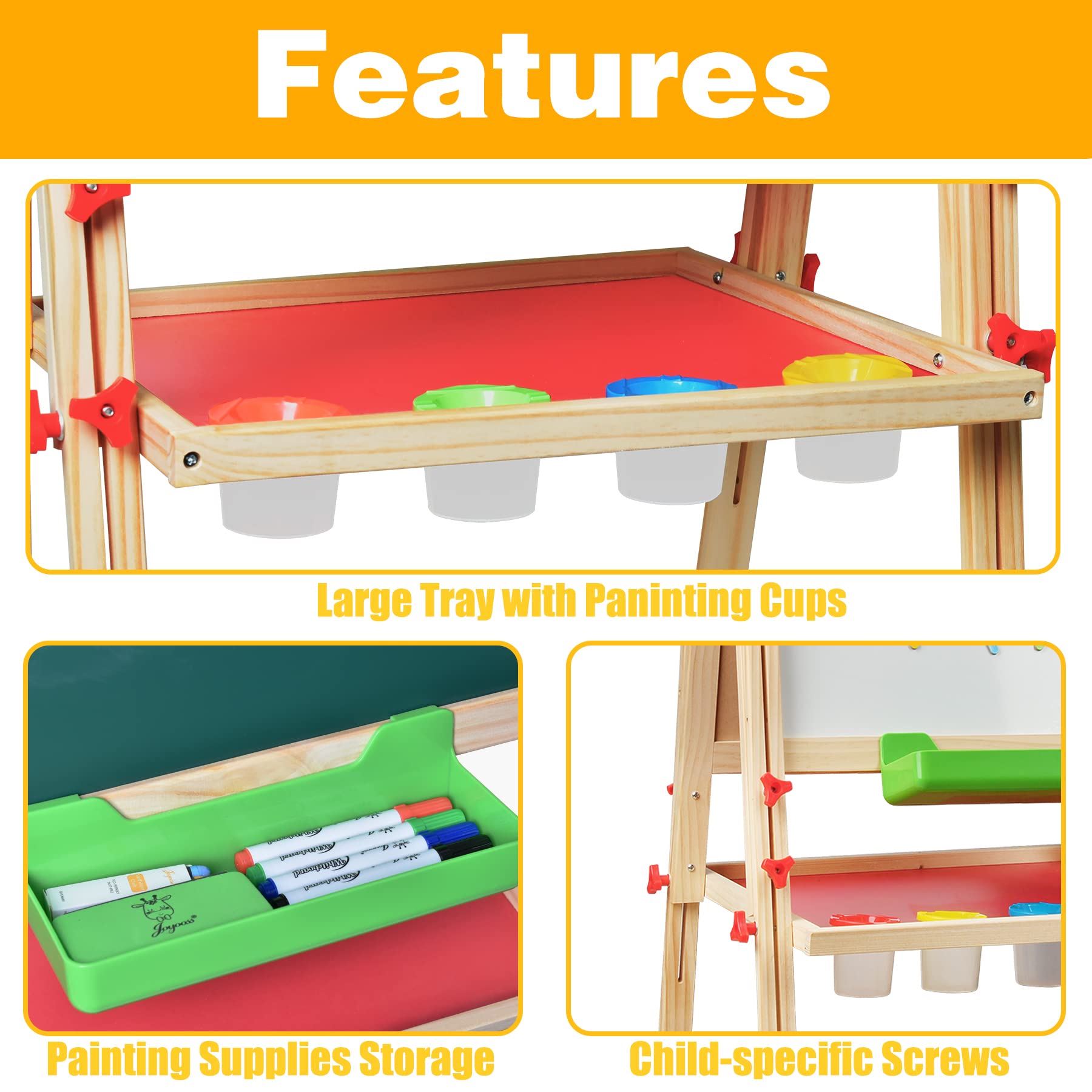 - u3010SAFE MATERICAL FOR KIDSu3011 -- The easel for kids is made of high quality wood.Compliance with international standards testing. Everything is for the safety of kids.