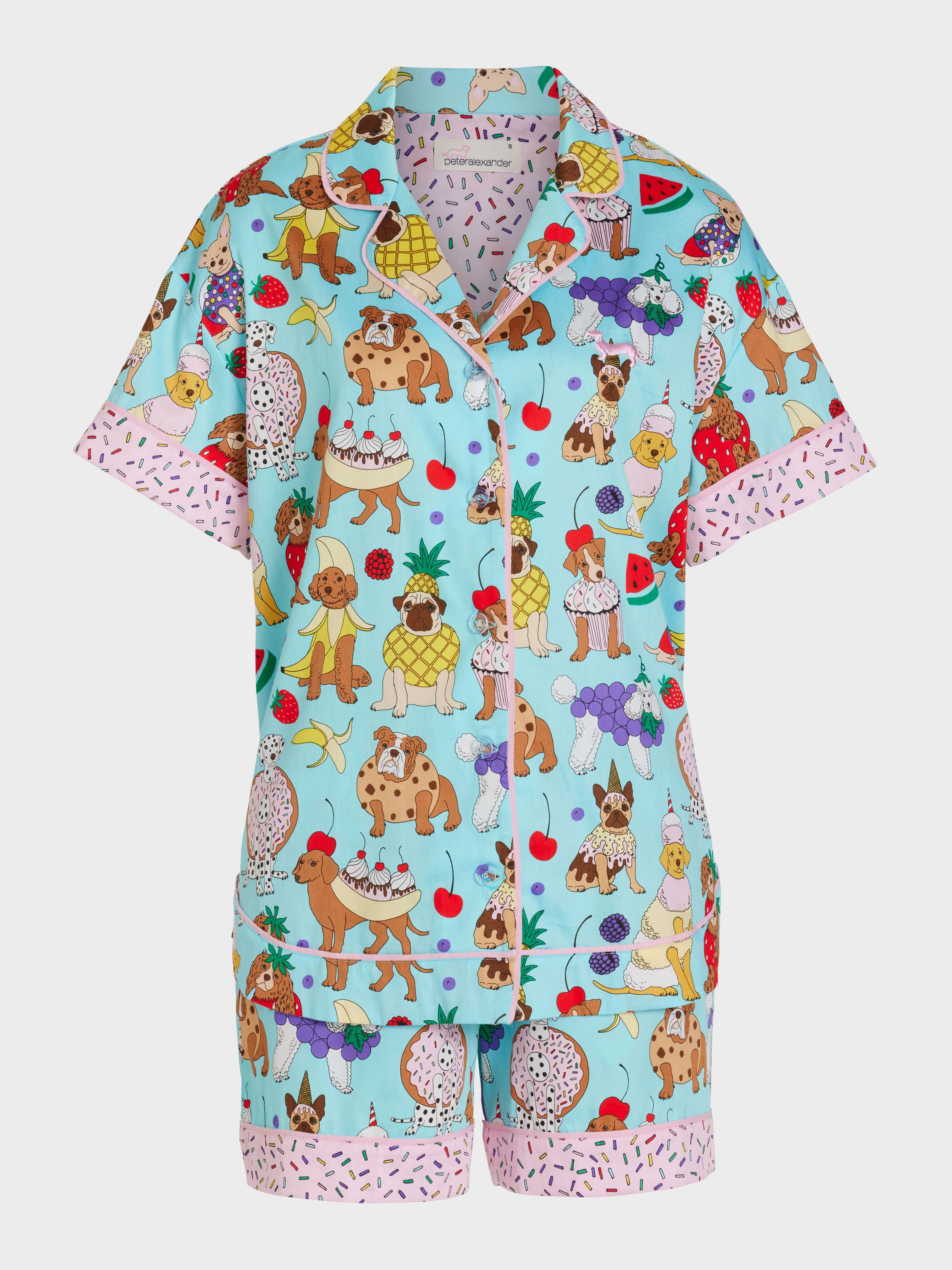 PJs you're sure to be drooling over, this women's short-sleeved set features an all-over print of your two favourite things: pups and snacks! Packaged in a matching fabric bag, this Karen Mabon pyjama set is definitely more than just a sprinkle of fun.?