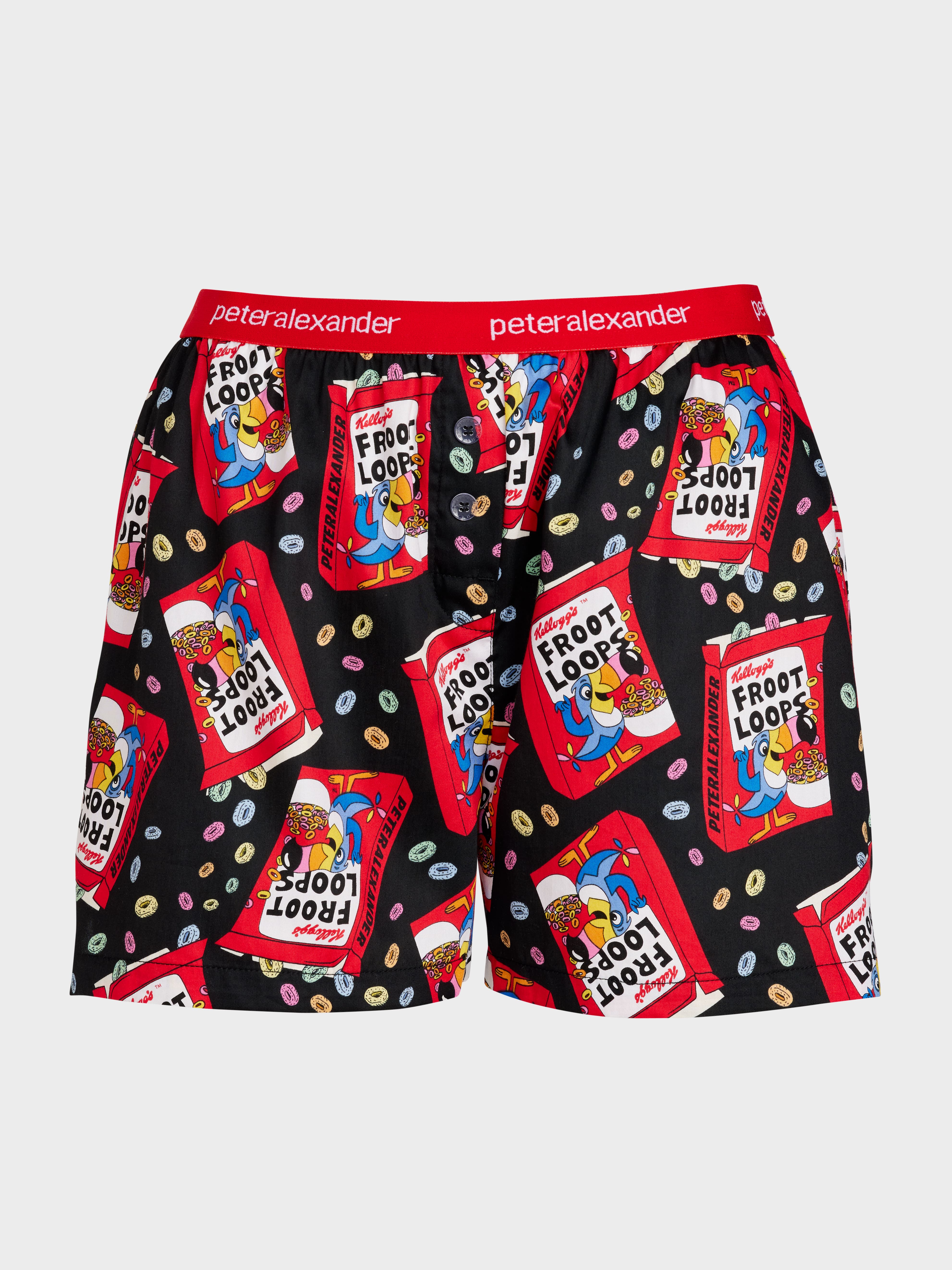 Don't be out of the loop on this one! Take a bite of this nostalgic Peter Alexander x Kellogg's mid length boxer short, featuring a Froot Loops print and packaged into a mini cereal box.?