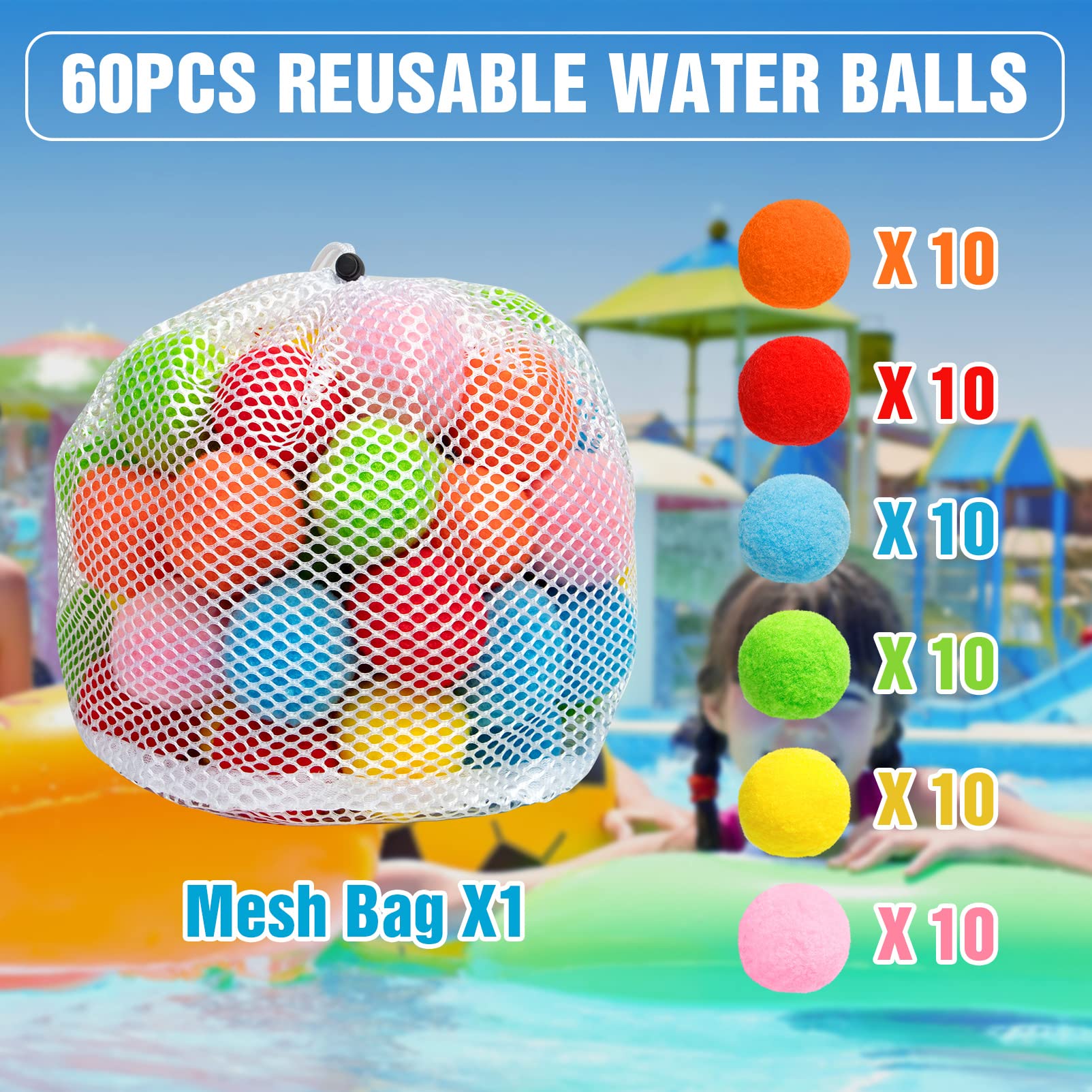 - Reusable Water Balls: Get 60 colorful water balls (10 each of red, orange, yellow, green, blue, pink balls) and a sturdy mesh bag for fast drying storage and carrying. These new outdoor water toys are popular with trampoline sprinklers.