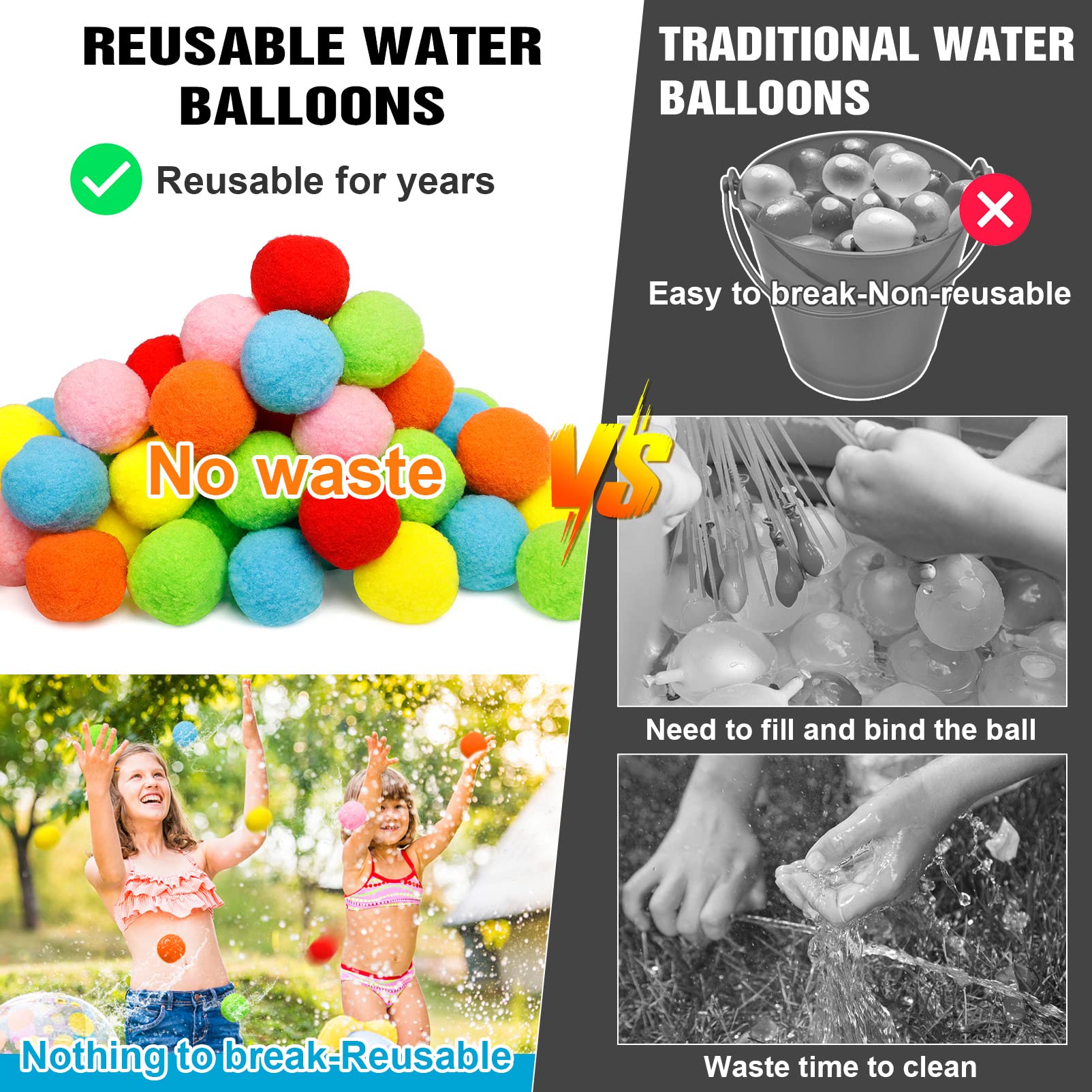 - Safe and Soft: These reusable water balls are softer than traditional water balloons, making them safer and kid-friendly. The absorbent cotton material also makes them durable and long-lasting.