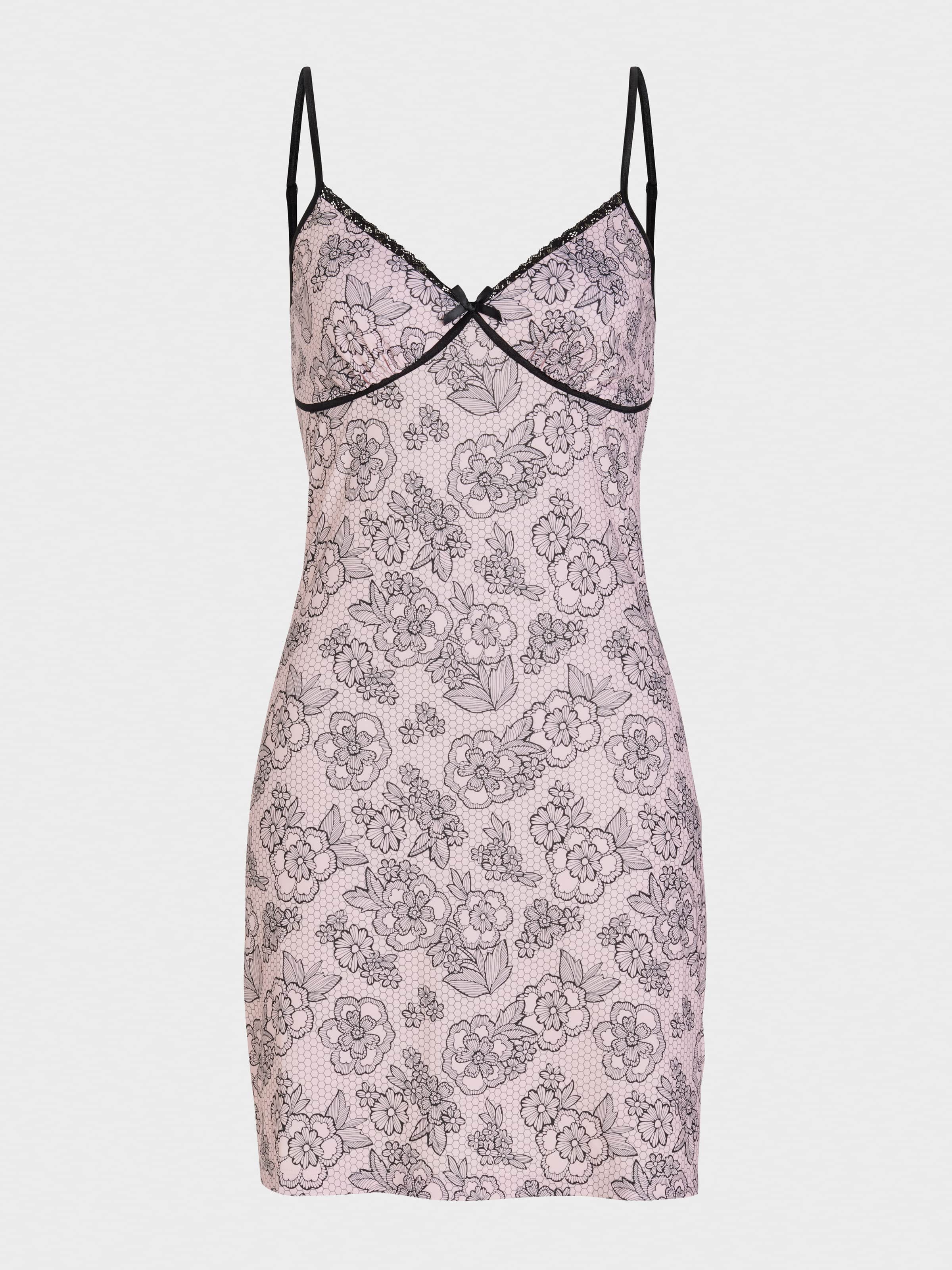 Pretty in pink, our favourite slinky nightie is back for summer! The sexiest addition to your PJ drawer, this nightie features a sweet floral lace print, complete with our signature bow.