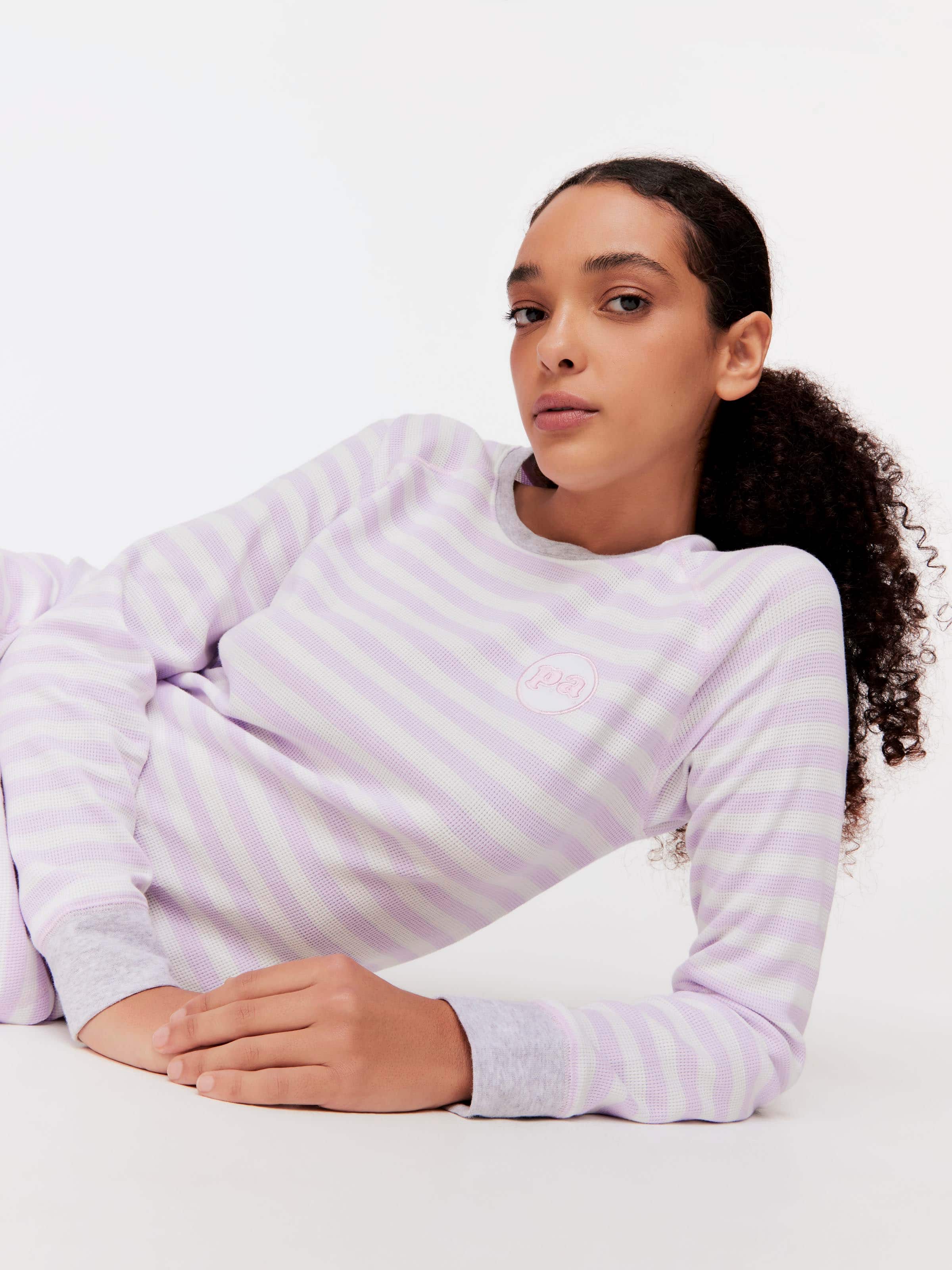 Stripe up your life with this lilac waffle easy PJ pant. Be sure to pair with the matching long sleeve for the perfect set.