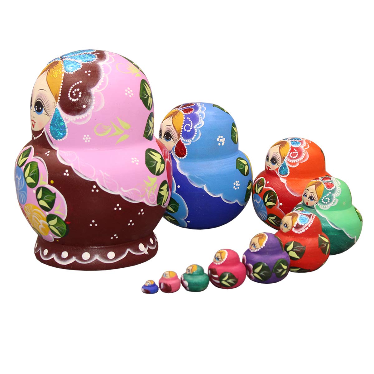 - Contains 10 different sizes nesting dolls.The largest one is around 5.9" High.