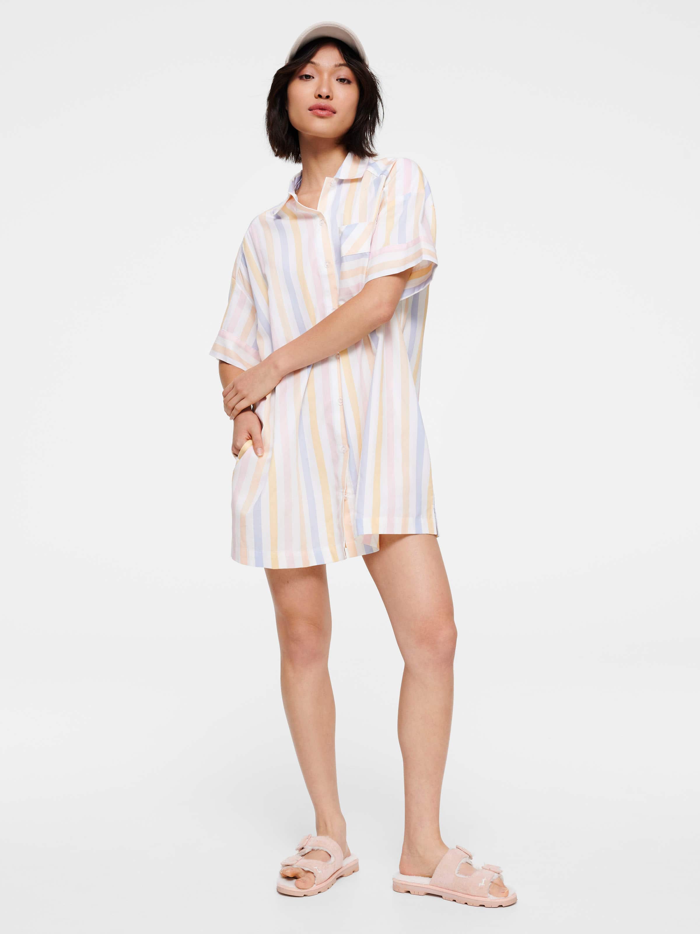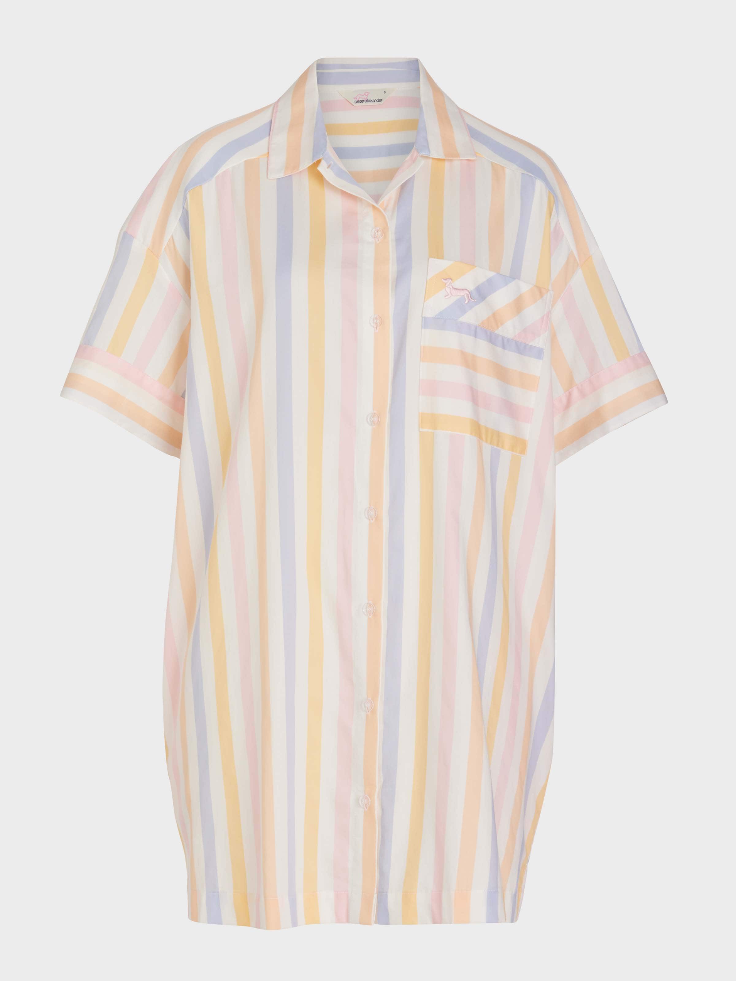 Stripe a pose in this colourful boyfriend style nightshirt. The perfect piece to take you from day to night, and back to day again.?