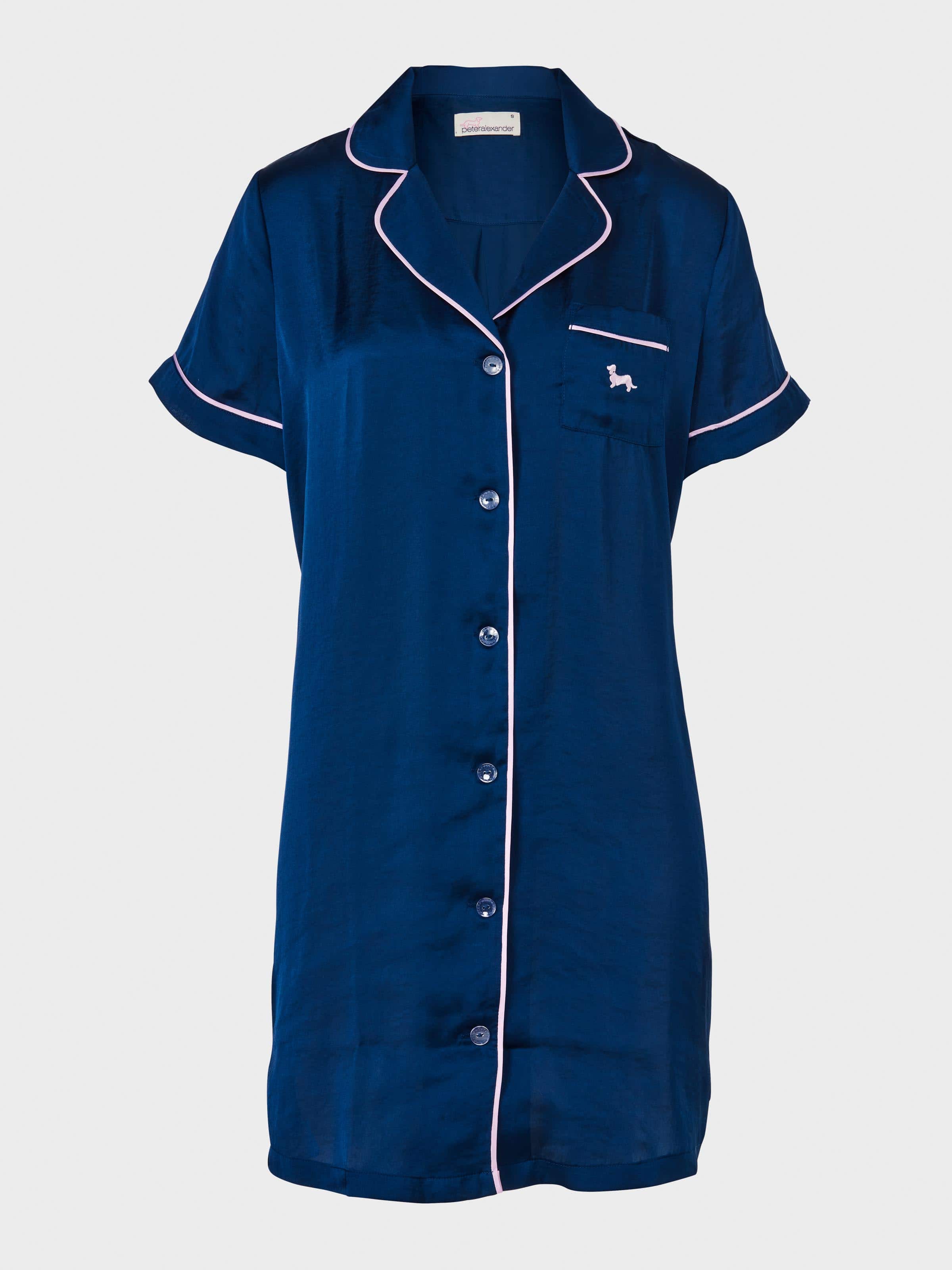 Sleep like a queen in this silky feel nightshirt. In a deep regal blue with a pink satin trim you'll sleep in the luxury you deserve.