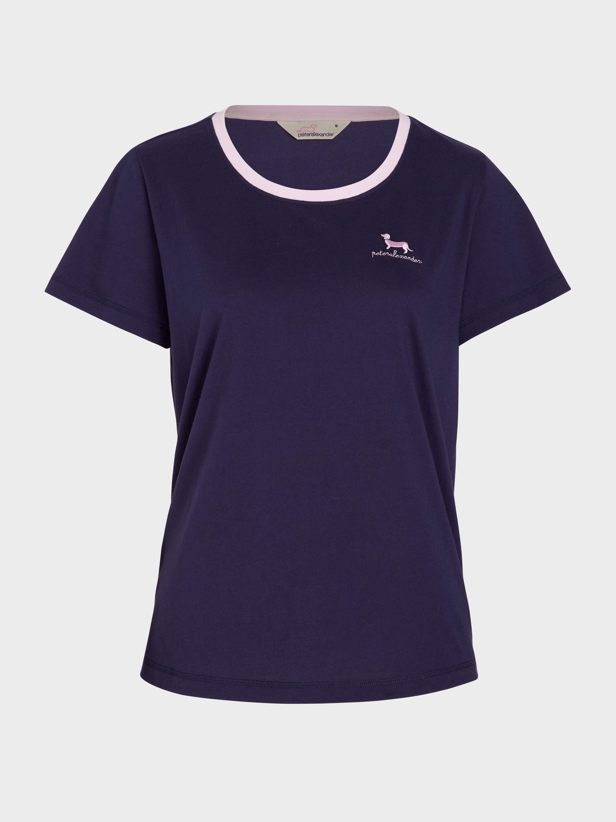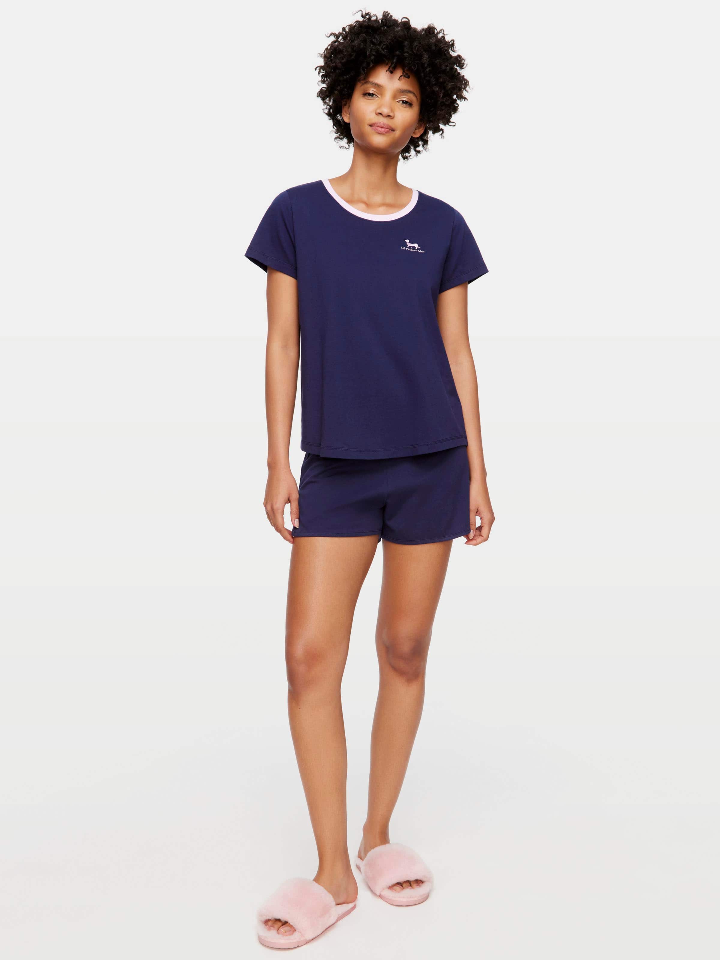 Keep it simple with this classic navy tee. A pink trim neckline and penny logo embroidery add a pop of fun to your bedtime attire.?