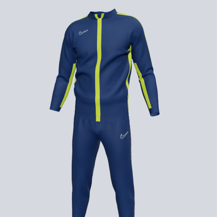 Introducing the Nike Dri-Fit Academy 23 Knit Track Suit! Meticulously engineered to deliver unmatched performance, this suit is ideal for your pre-match warm-ups or training sessions. Featuring Nike Dri-FIT technology, it efficiently wicks sweat away from your skin, promoting faster evaporation to keep you dry and comfortable. Constructed with 100% polyester for the body and panelling, and 97% polyester/3% spandex for the ribbing, it offers a snug fit that stays in place during movement. Mesh insets strategically placed at the shoulders, sleeves, and sides enhance breathability, ensuring you stay cool even during the most rigorous workouts. The full-zip design includes zippered front pockets and an embroidered Swoosh logo, elevating your style with a professional touch. Plus, when it's time for cleaning, simply toss it in the washing machine - it's that easy! Elevate your training experience and style with the Nike Dri-Fit Academy 23 Knit Track Suit today!