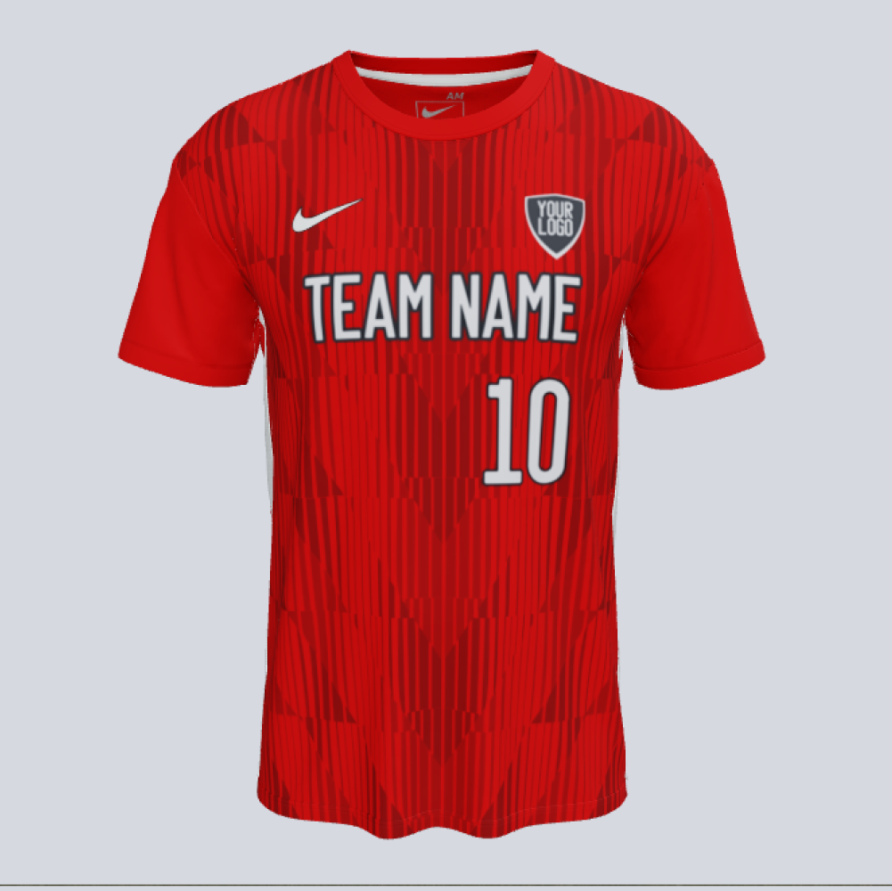 Dress your squad like their heroes in the Nike Dri-FIT US Digital 60 Jersey. Mesh on the back and side panels offer breathability where athletes need it most. Body and sleeves are a Nike Dri-FIT knit fabric that moves sweat away to help keep players dry. Highly customizable with school and team details. This top is made with 100% recycled material. Side and back panel construction use a more efficient pattern to help reduce material waste.