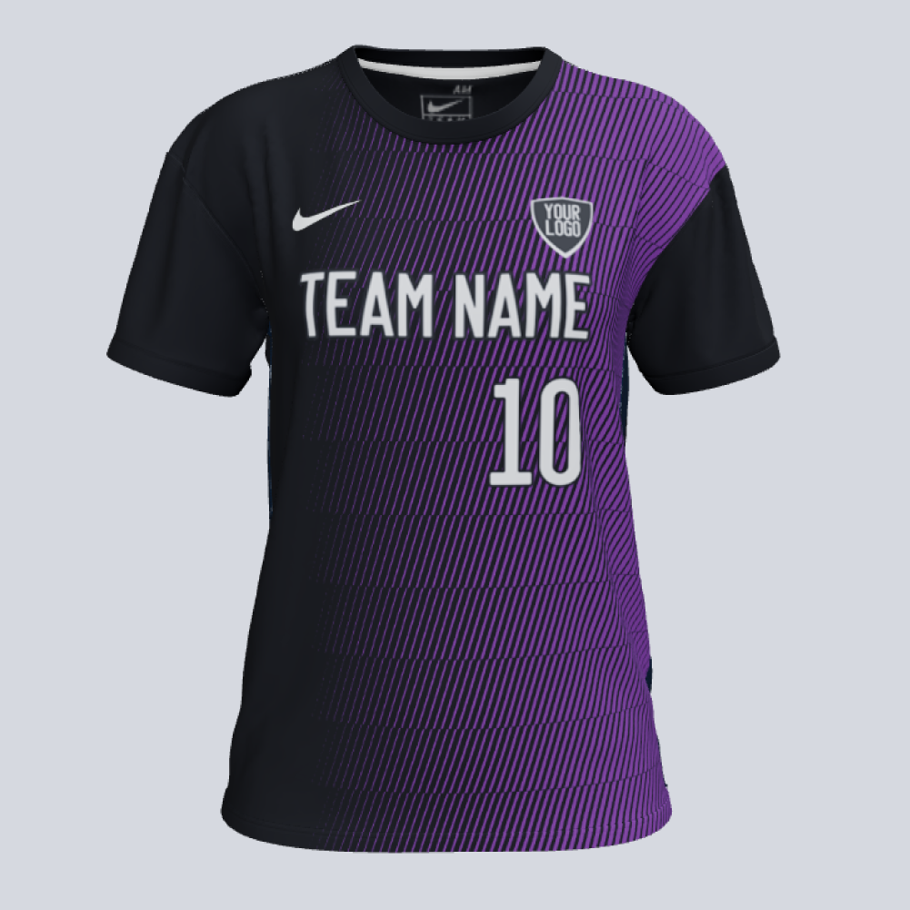 Dress your squad like their heroes in the Nike Women's Dri-FIT US Digital Jersey. Mesh on the back and side panels offer breathability where athletes need it most. Body and sleeves are a Nike Dri-FIT knit fabric that moves sweat away to help keep players dry. Highly customizable with school and team details. This top is made with 100% recycled material. Side and back panel construction use a more efficient pattern to help reduce material waste.