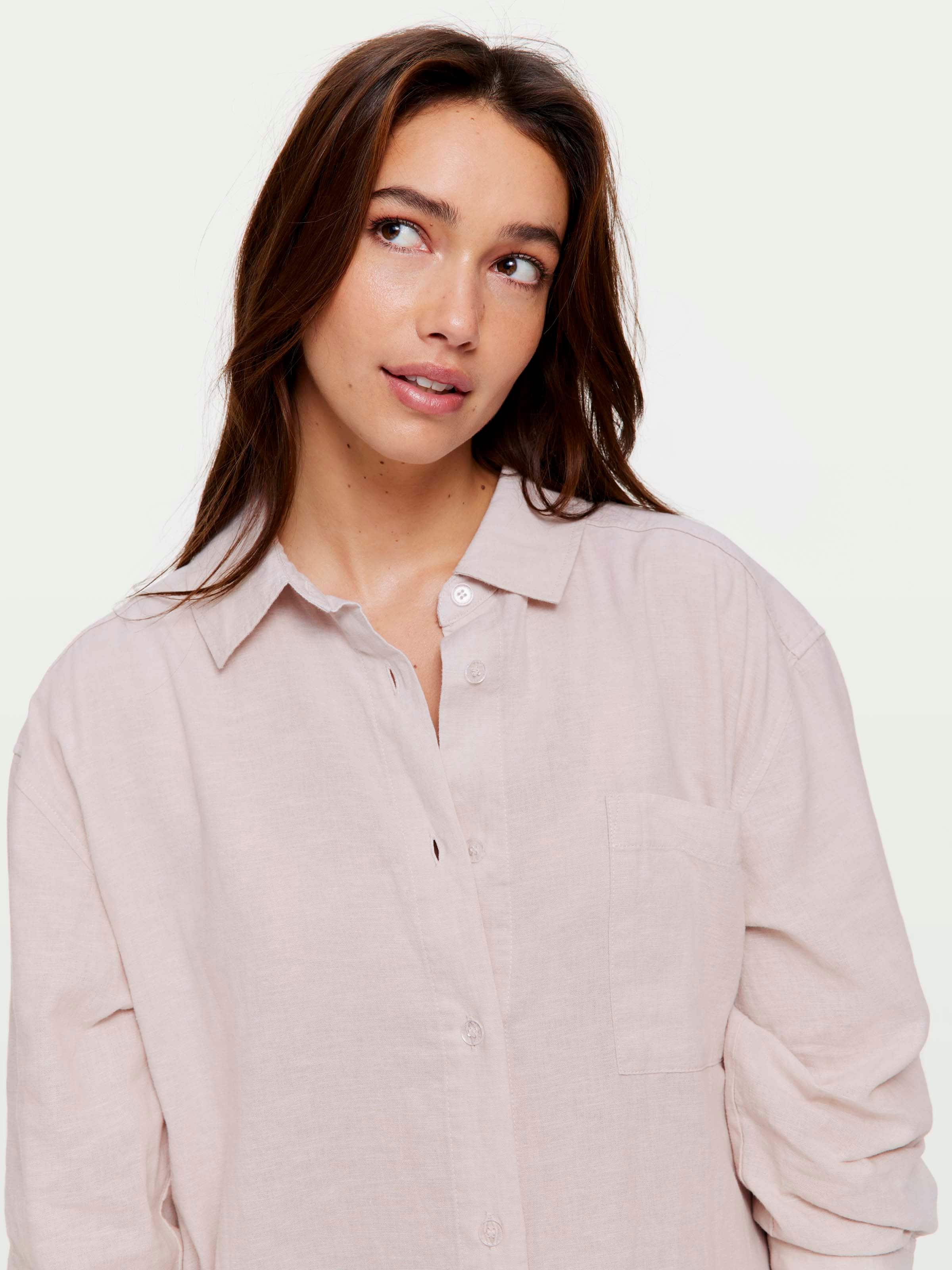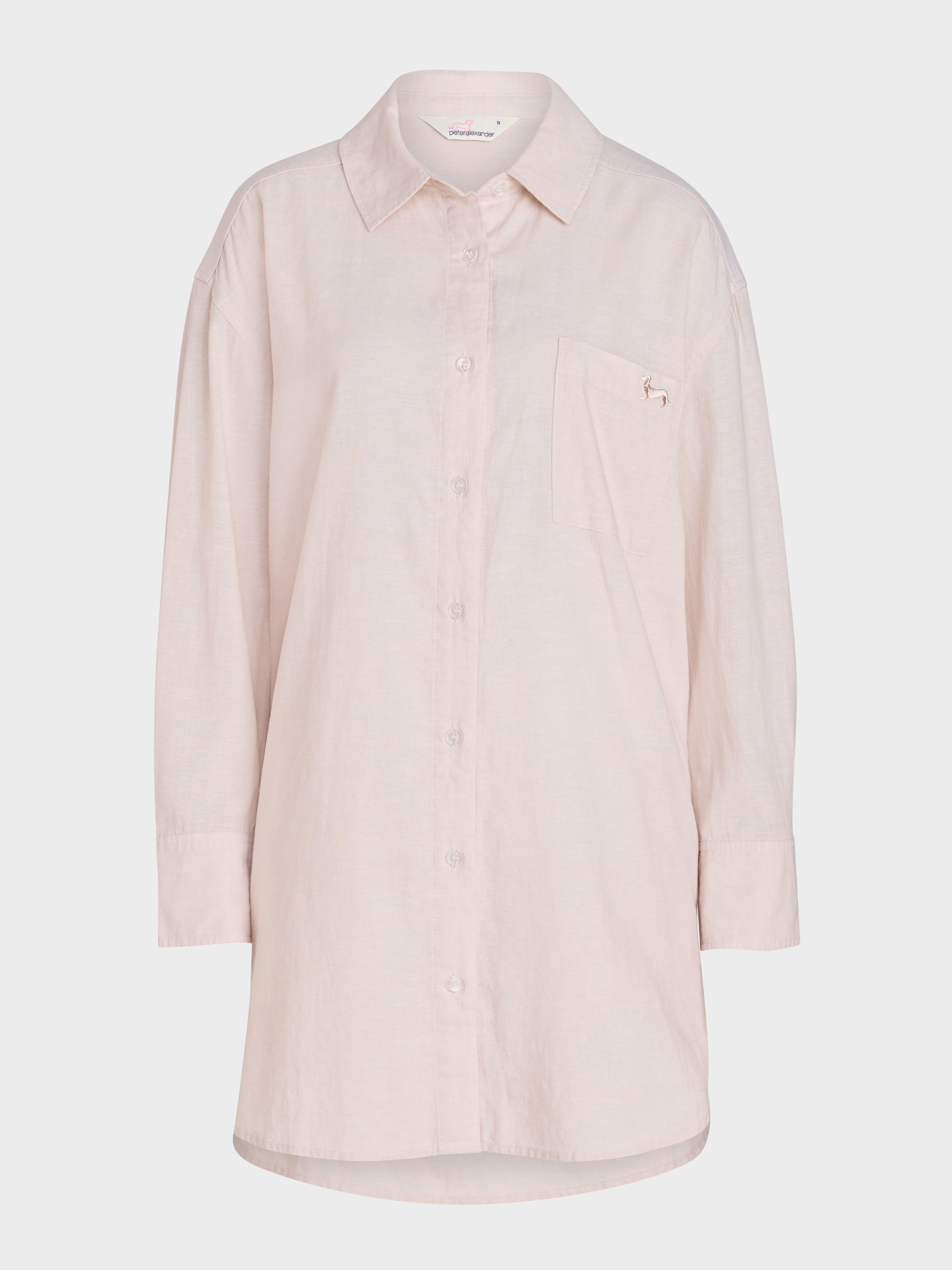 Create your capsule PJ wardrobe with this stunning oatmeal linen blend nightshirt. Featuring a collar & button down front, this shirt will take you from night to day, and back to night again.?