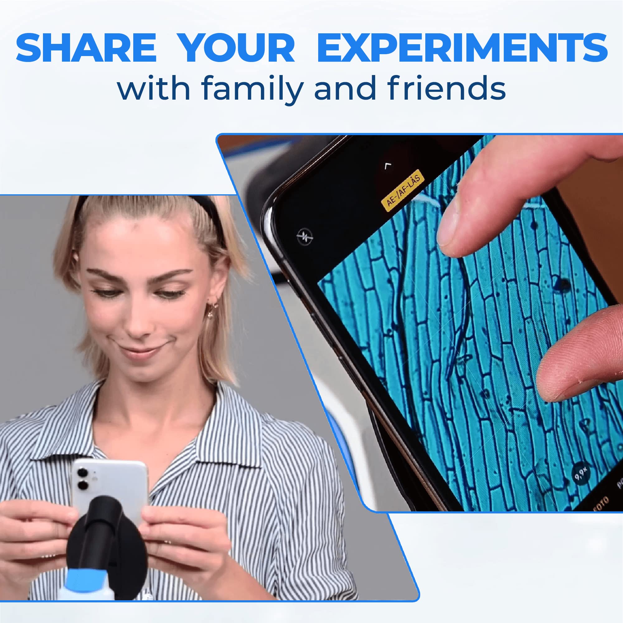 - Well Built: The sturdy professional microscope also comes with a cell phone microscope holder (to show off your slide experiments with friends and family), x10 specimen slides, x5 blank slides and x20 cover slips. Enjoy Science by conducting your own experiments