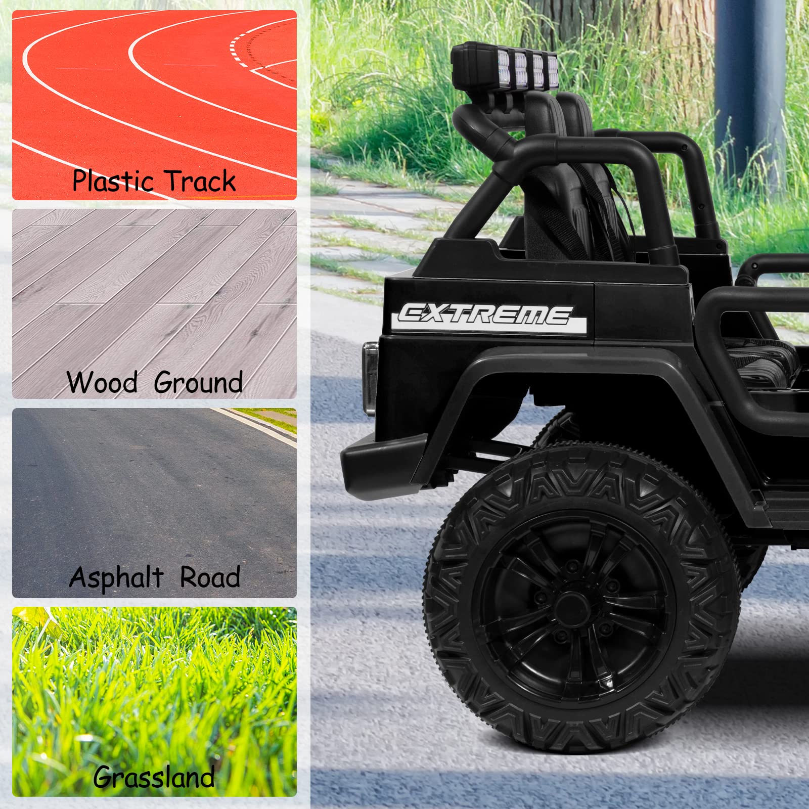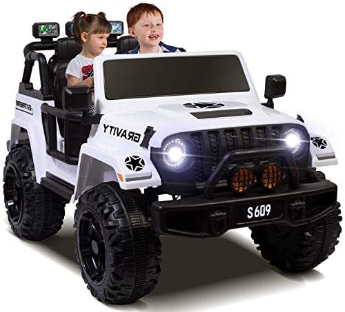 - u3010Realistic and Attractive Functionu3011The kids 2 seater ride on car truck equip with MP3 player, AUX input, USB port & TF card slot, and it also can be connected to your device to play music or stories, provide your children with real experience and enjoy their favourite music anytime. The forward and reverse functions on remote controller for adjustment, children will gain more autonomy and entertainment during playing.