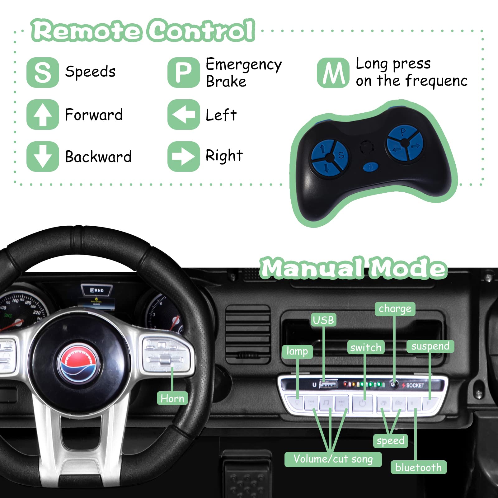 - u3010Two Driving Modesu3011 a.Parental remote control mode: Parents have the option to control the directions their child goes in, enjoy the happiness of being together with your baby. b. Battery operate mode: Children will be proficient in using foot pedal acceleration and steering wheel to operate their own electric car.