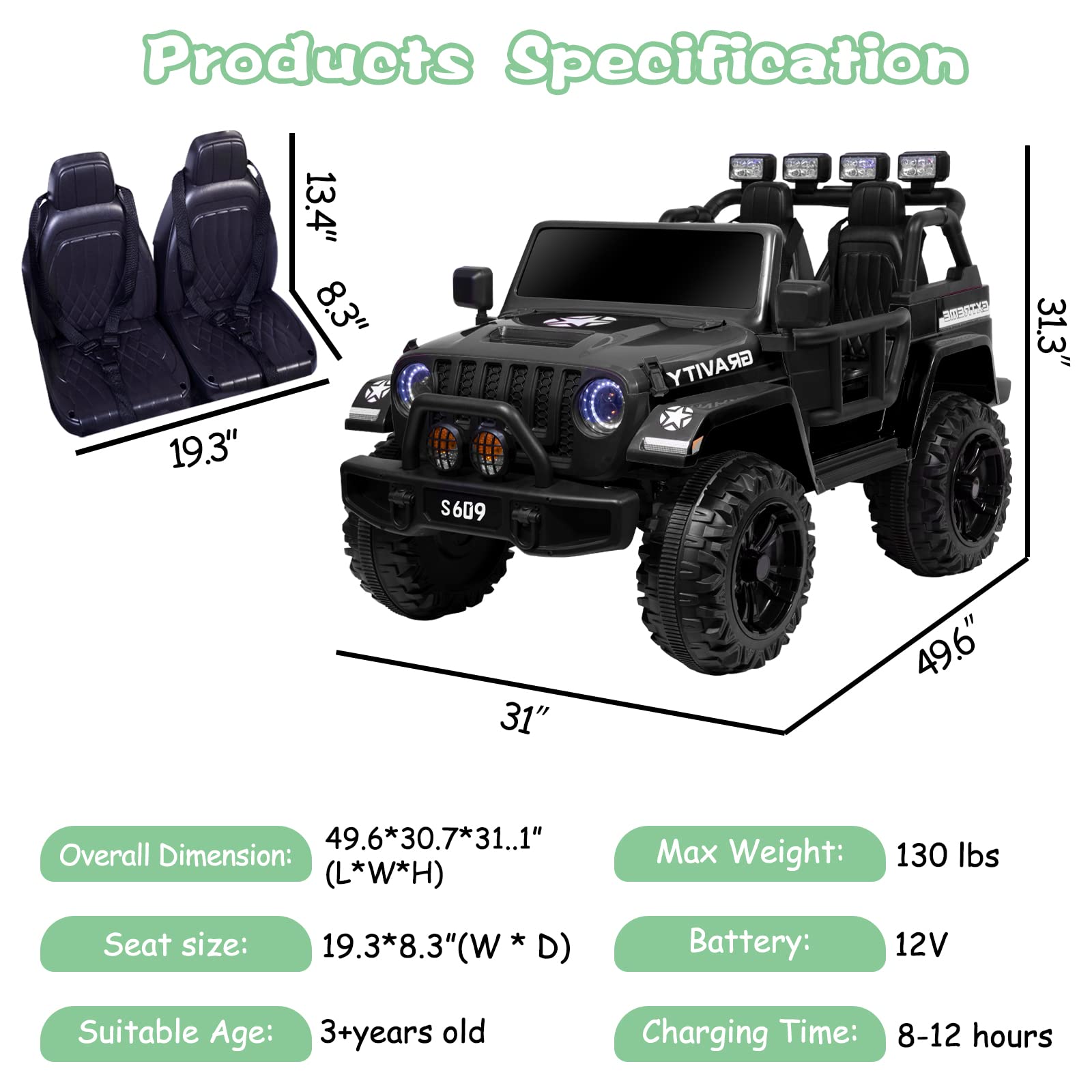 - u3010Perfect Birthday/ Christmas Gift for Kidsu3011 Suitable for children 3-8 years old, Max Weight Capacity: 130lbs, Seater Size: 19.3*8.3inch, suitable for 2 kidsuff1bChoose this 2 seater ride on car as a great companion to accompany your childu2019s growth, let your little kids drive car with their friends and brother, enjoy driving and playing happiness together.