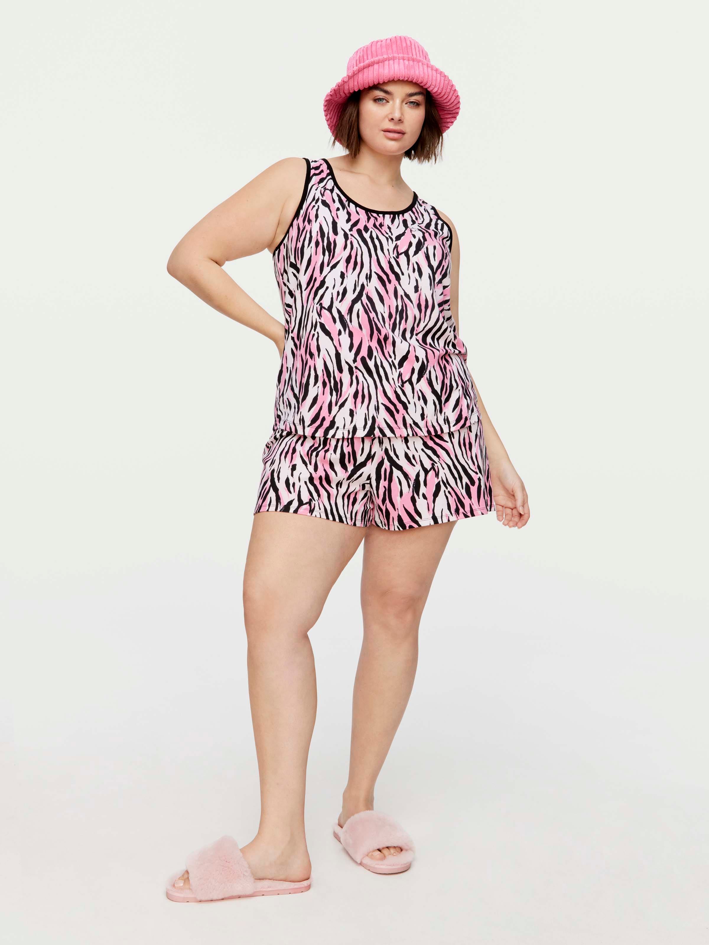 Go wild for this pink zebra print tank. Perfect for pairing with the matching easy pants or mid shorts.?