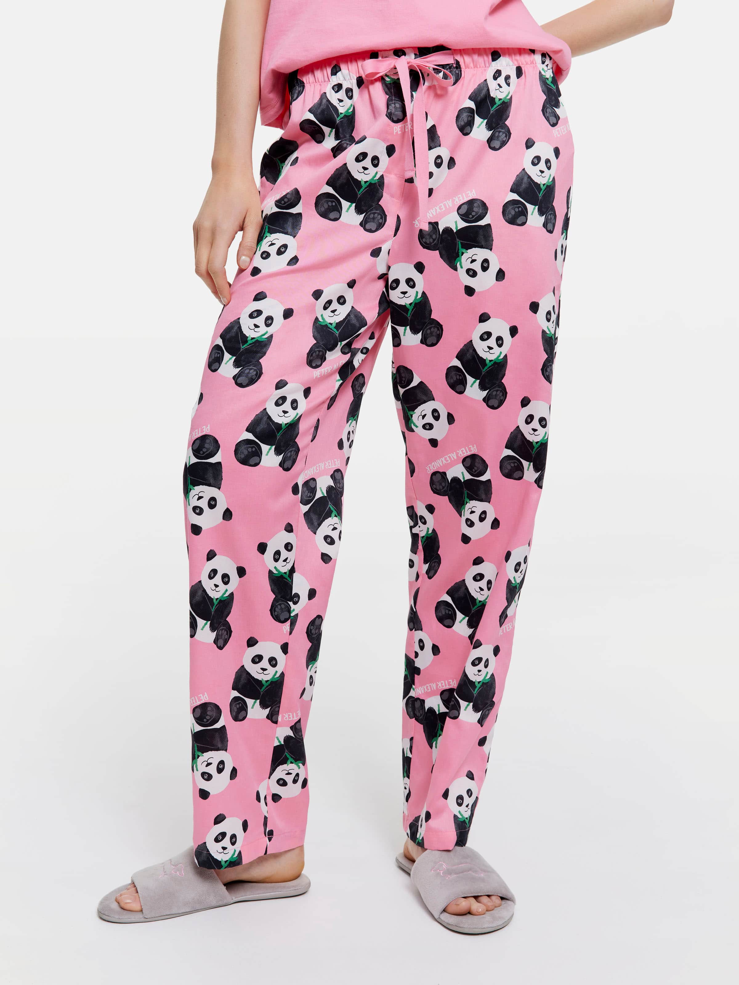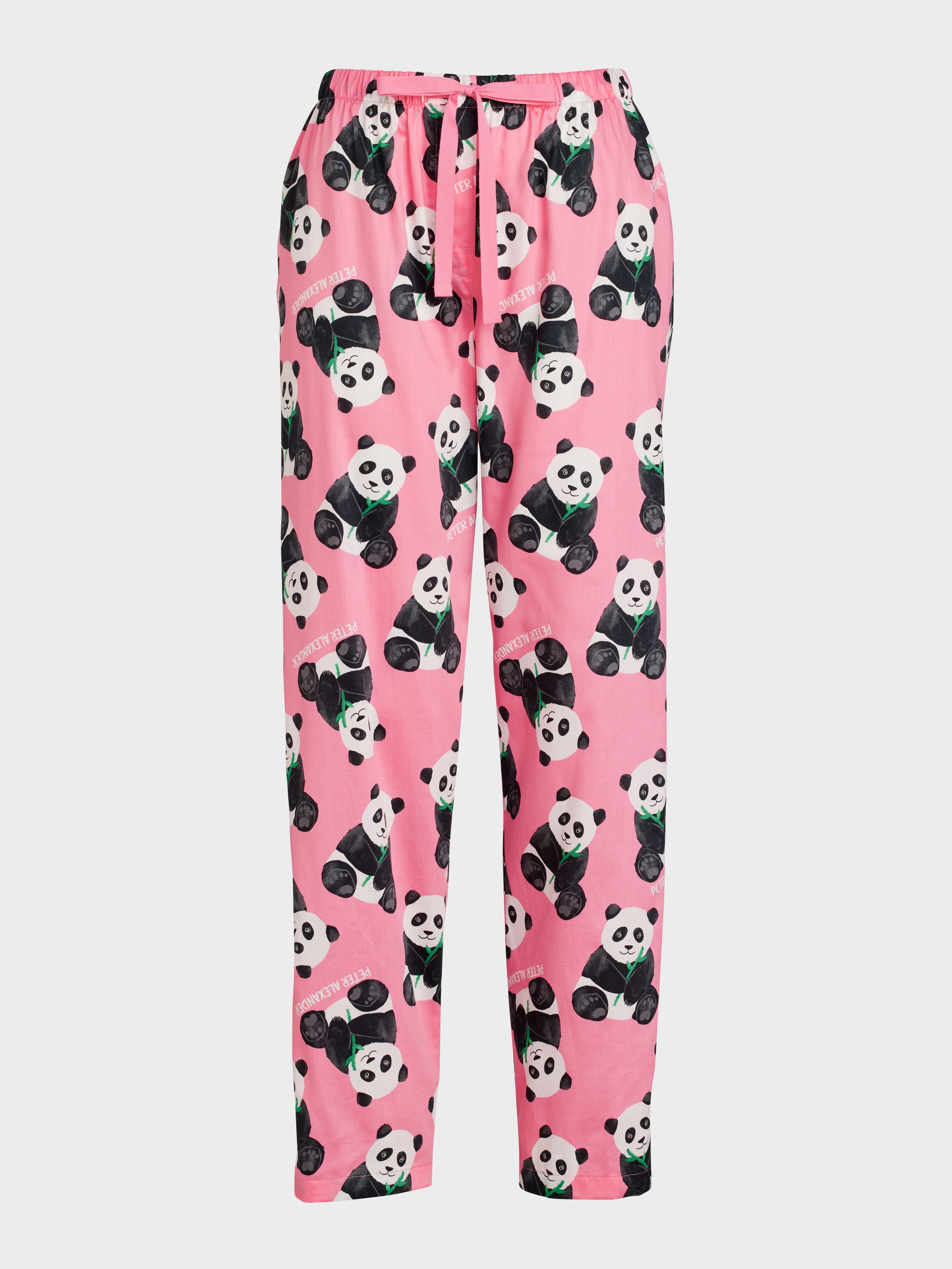 Ideal for lazy days where you just want to hang around eating bamboo... these women's classic cotton sateen pants feature an all-over panda print.