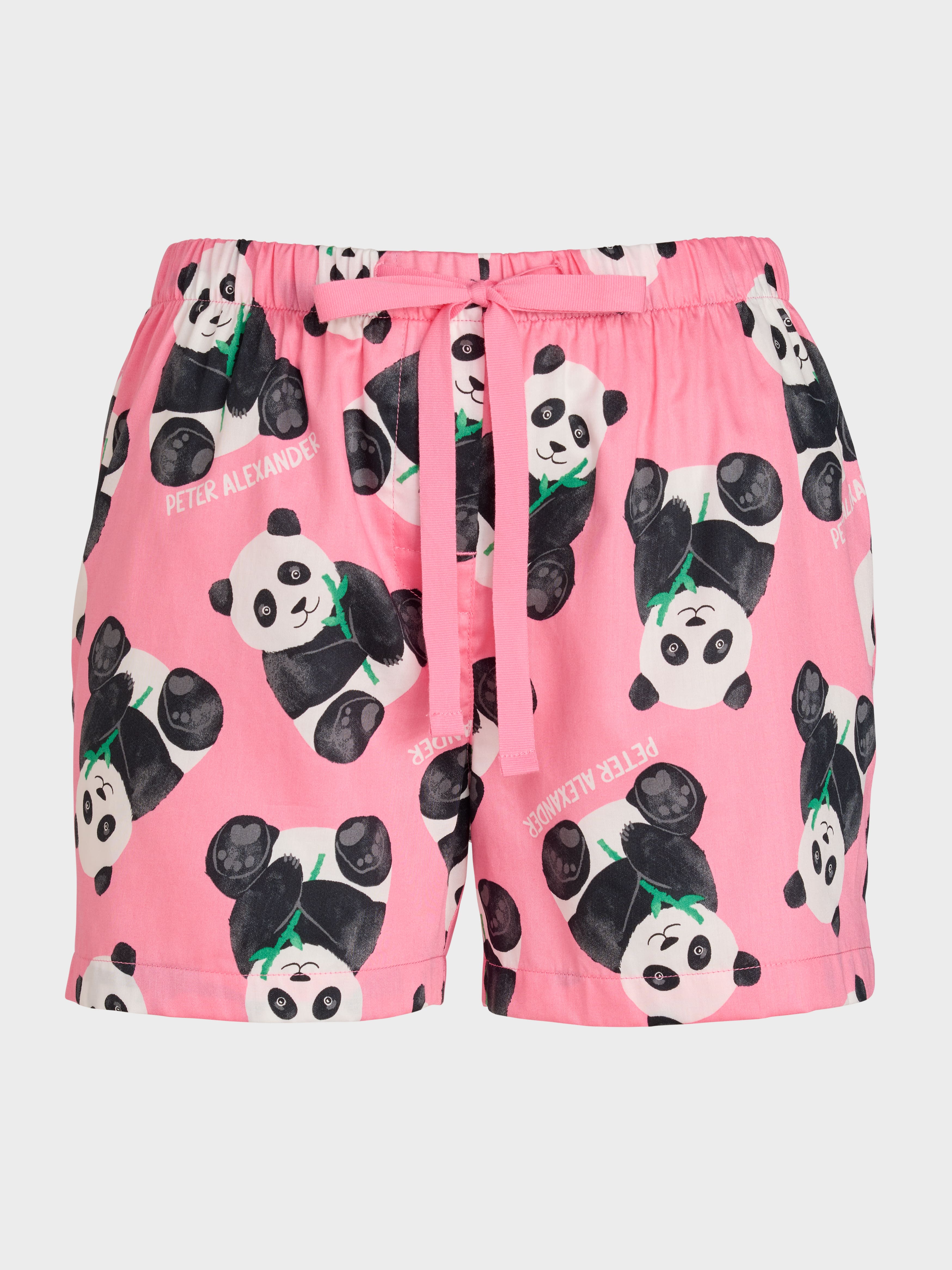 Ideal for lazy days where you just want to hang around eating bamboo... these women's classic cotton sateen shorts feature an all-over panda print.