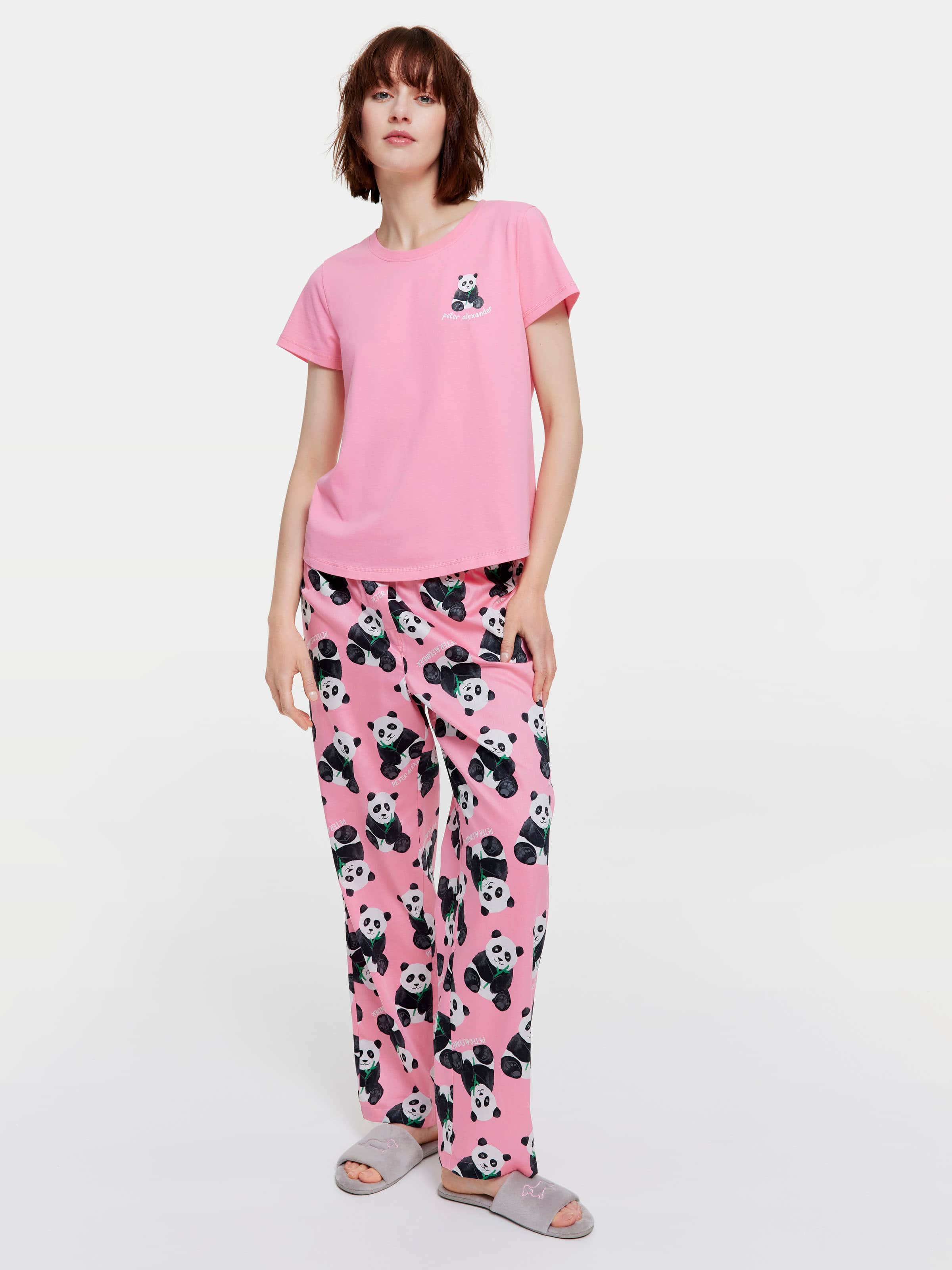 Summer pandamonium is just around the corner. This women's cotton jersey tee is a perfect pair with the matching classic pants or shorts, complete with the sweet panda print.