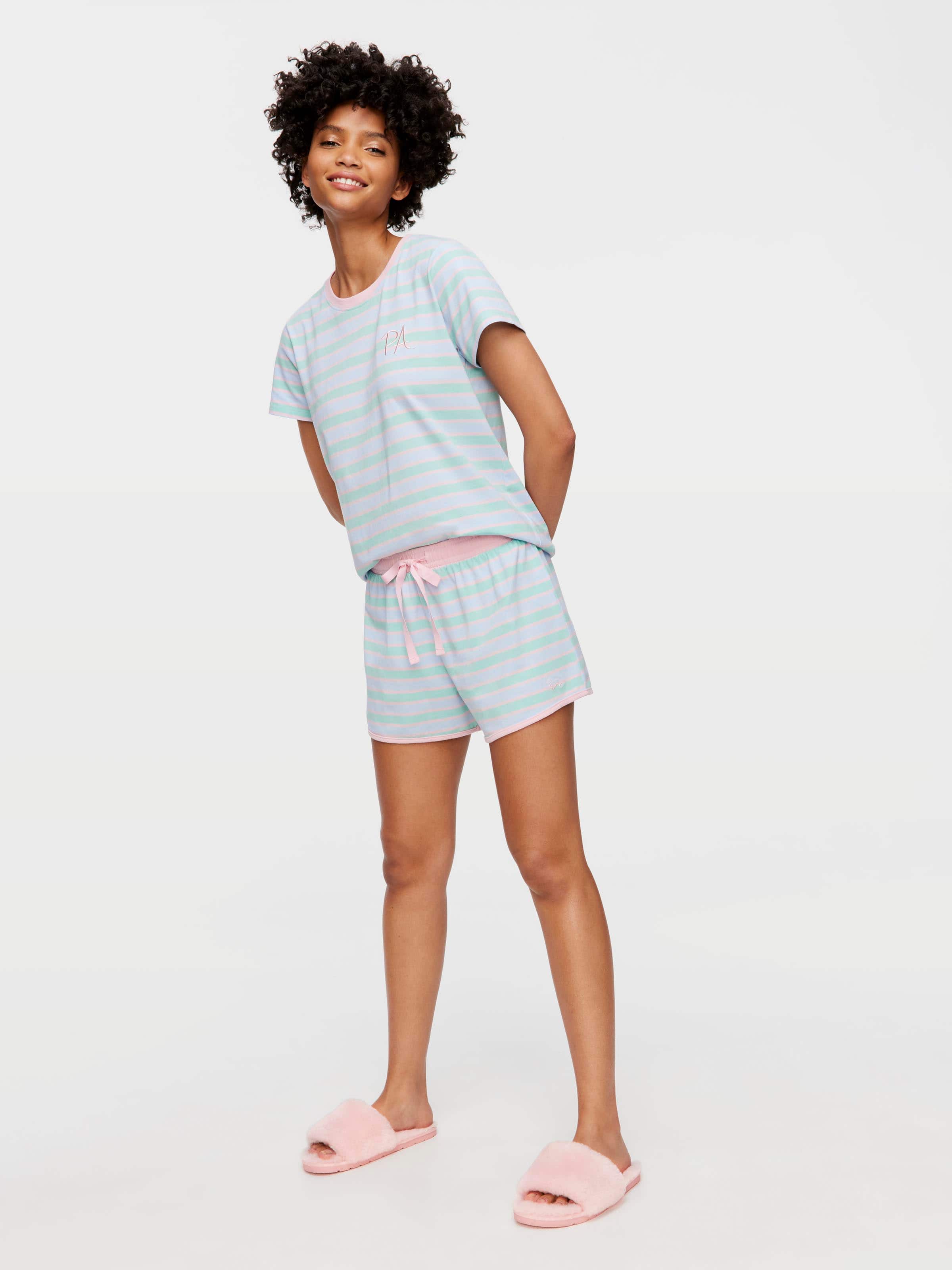 Keep it simple with this grey stripe mini short. Be sure to pair it with the matching tee for the perfect PJ 'fit!