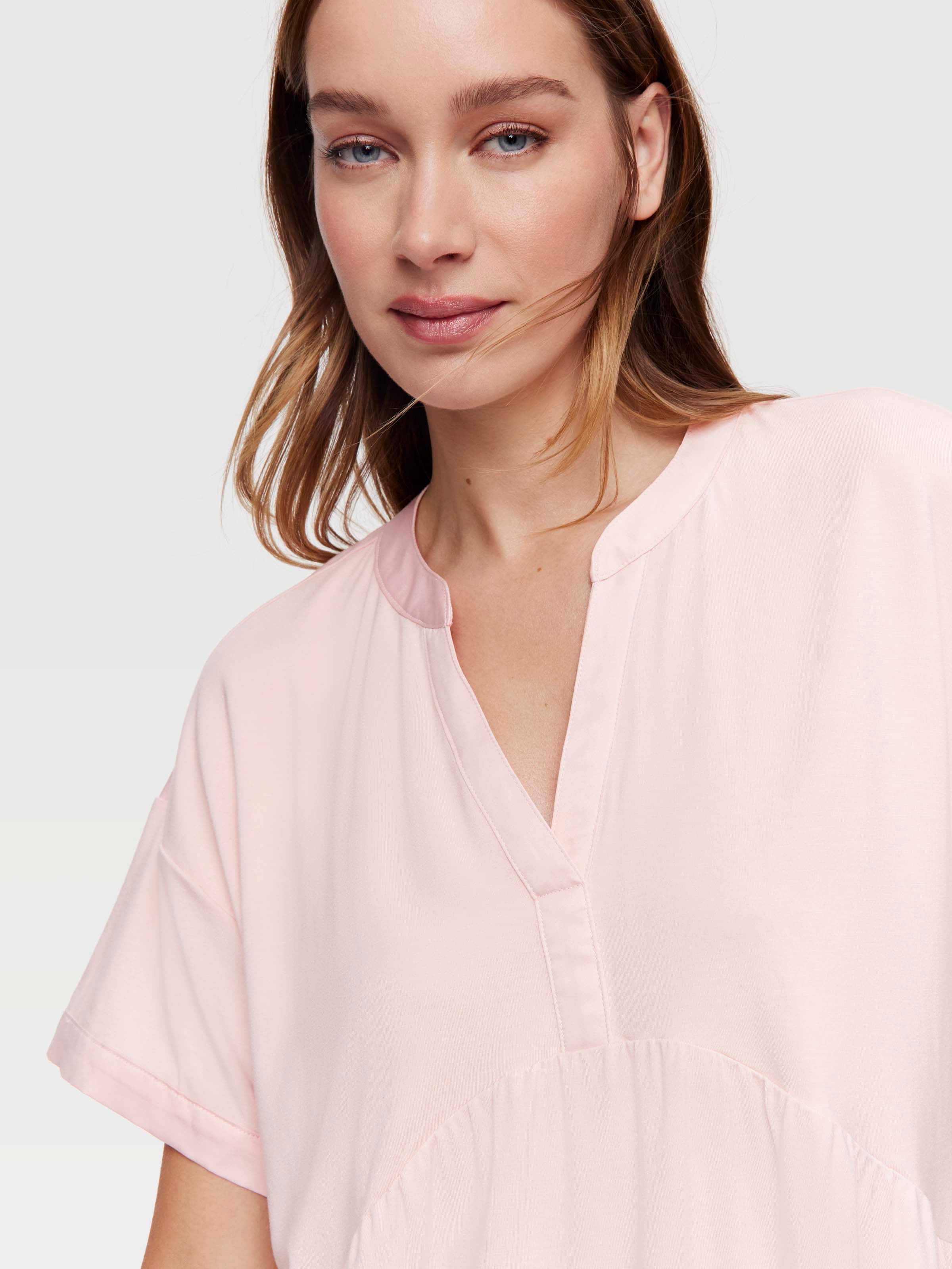 You'll be peachy keen for this v-neck tee! Featuring satin trims and in an oversized style, this tee is designed to pair back with all your favourite P.A. pyjama bottoms.?