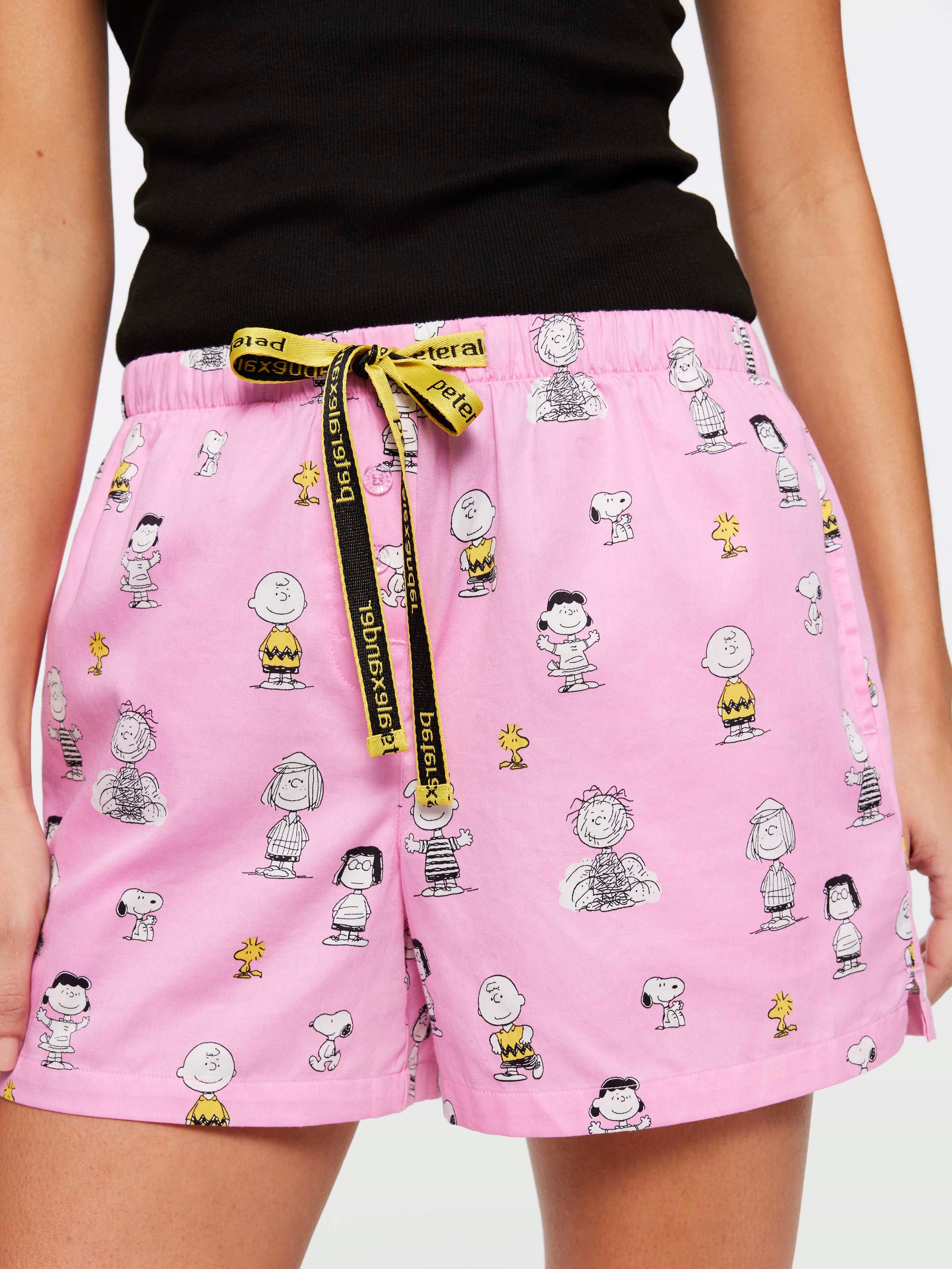 Any Peanuts fan will love these comfy cotton sateen mid shorts! Featuring a print of Charlie Brown and his pals from the classic Peanuts cartoon, these PJs will pair best with the matching raglan Snoopy tee.?