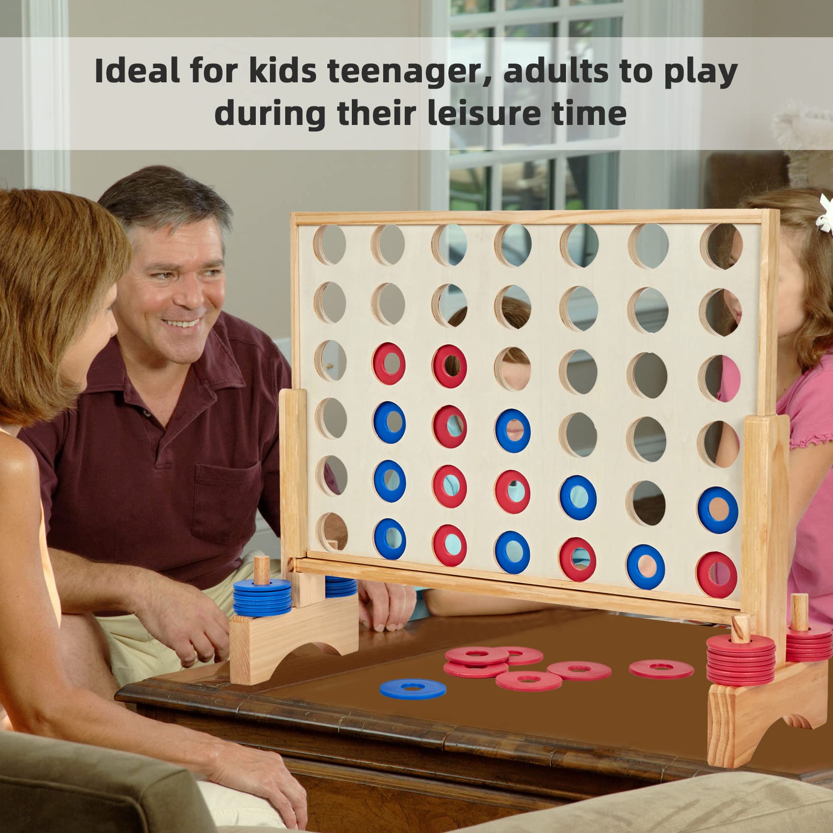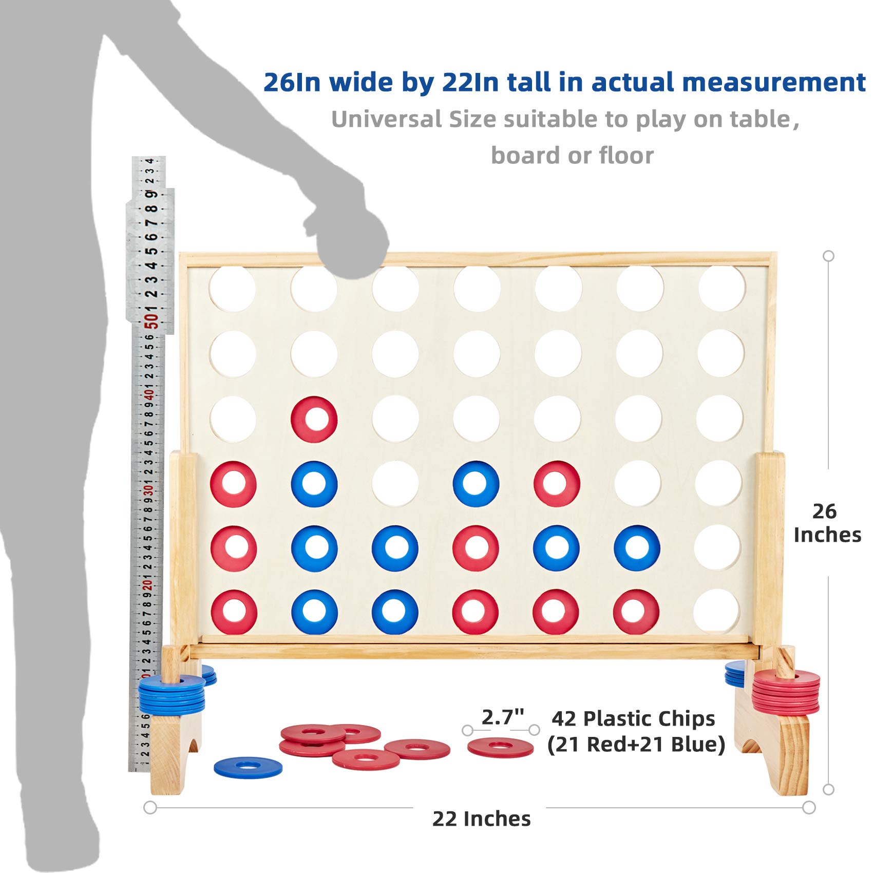- u3010Giant 4 in a Row Game Setu3011The Pointyard Giant Line up 4 Game Set includes 1 pinewood board, 2 removable wooden legs, 42 plastic chips (21 red+21 blue,Each chips measure 2.7" diameter), 1 durable carrying storage bags, and 1 easy to learn Game Guideline,Giant size of 26u201d long and 22u201d tall after assembly which is the perfect size for both indoor & outdoor activities.
