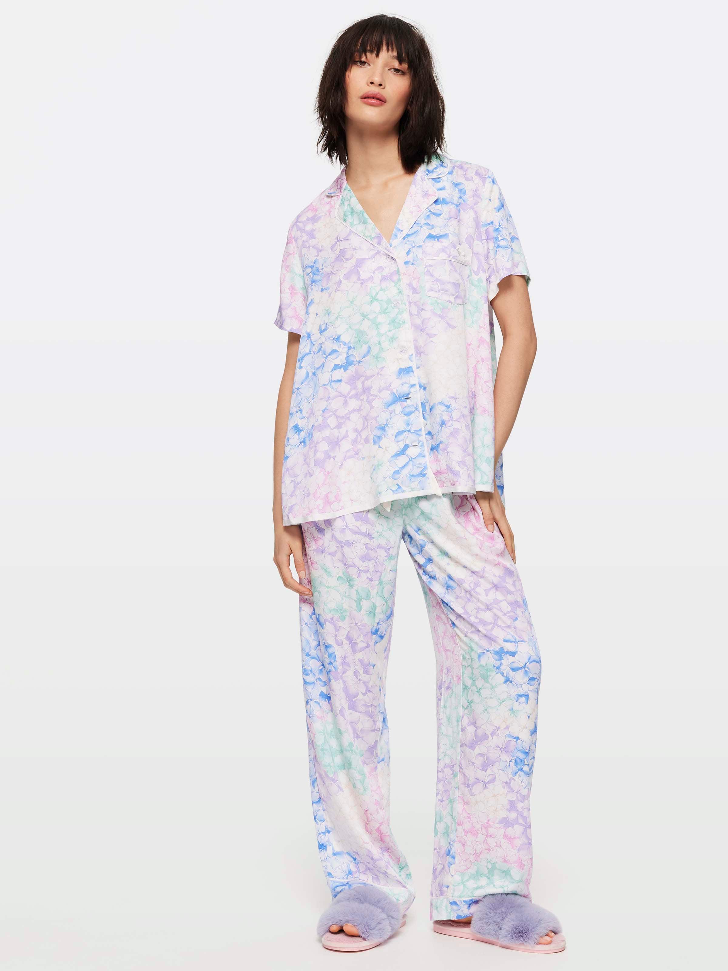 You'll love these PJs a bunch! This floral women's set features a short sleeve fashion style shirt and matching pants, packaged in a pretty gift box.