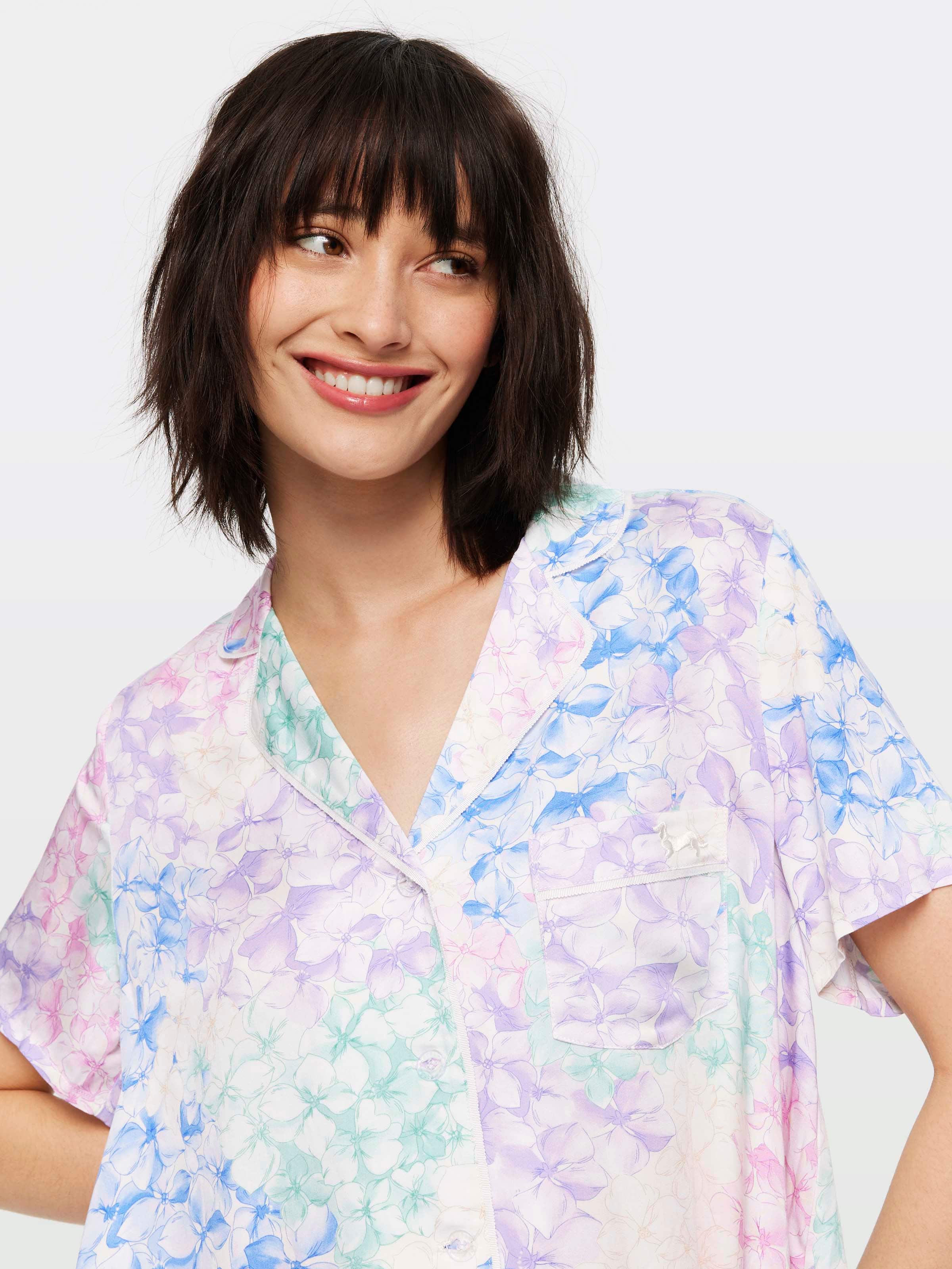 You'll love these PJs a bunch! This floral women's set features a short sleeve fashion style shirt and matching pants, packaged in a pretty gift box.