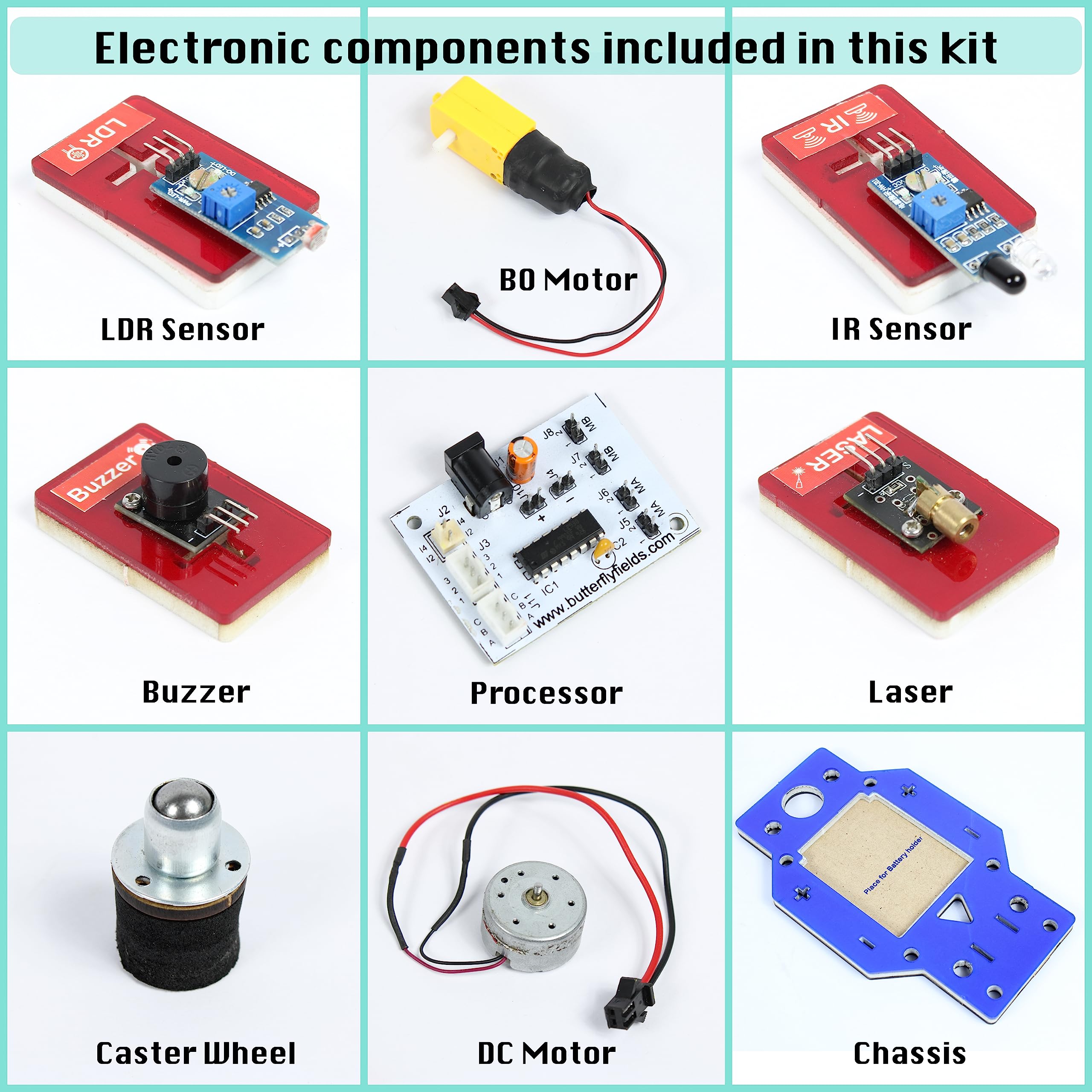 - u2b50 u3010WHAT YOU GETu3011 : 50+ parts including sensors, processor brain, motors, wheels, cables connecting wires, LED's, pump, and top-up materials without the need for soldering, tools, or coding skills. Kids may use their ideas and creativity to build ten various types of building robots, like the Ninja Spy Bot, Doodle Bot, Shadow Bot, Yoki Bot, Bank Anti theft Sensor, and many more.