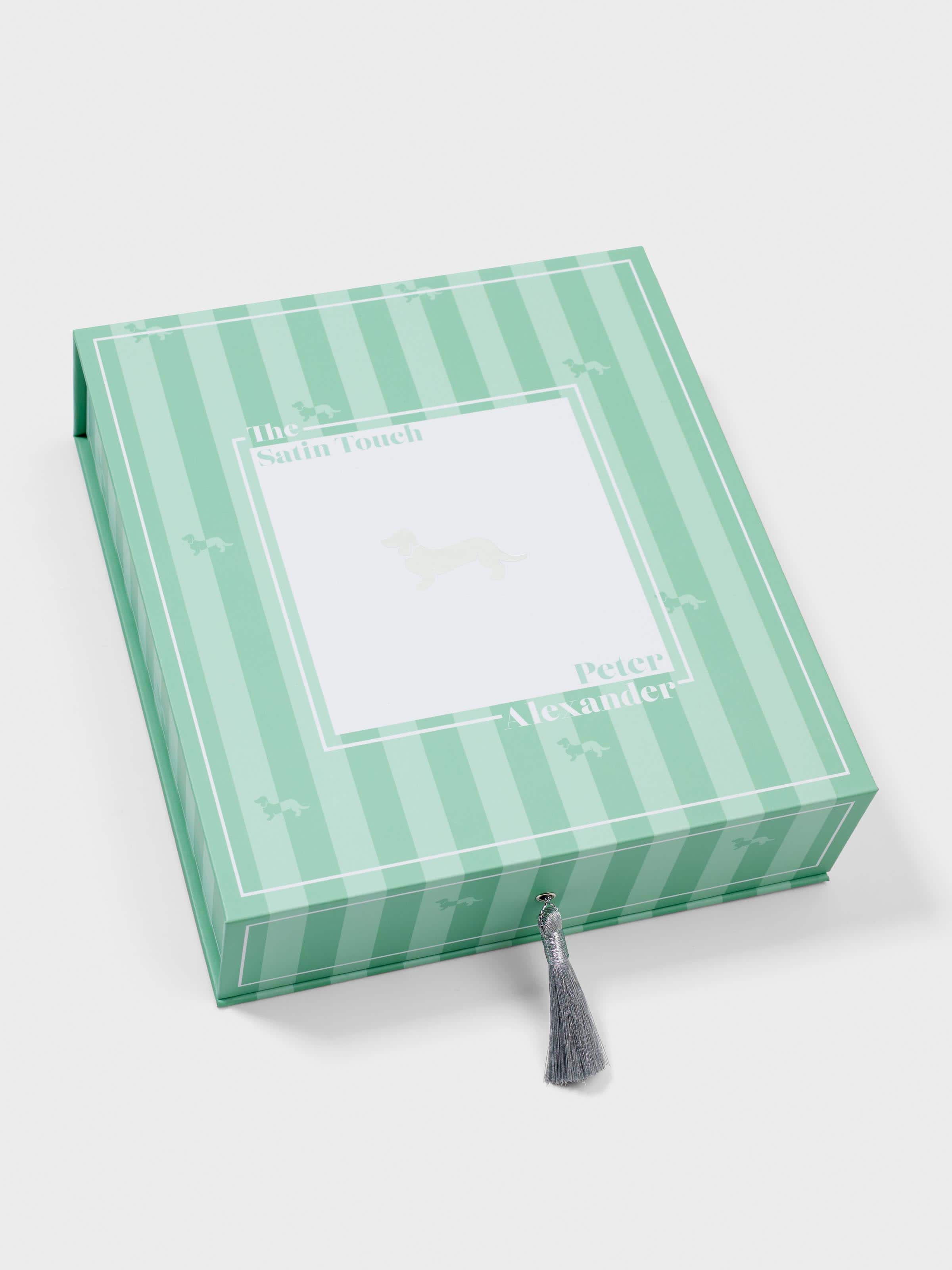Our best selling satin pyjama set is now available in an irresistible new sage green colour. This new shade has all of your favourite features, including a soft self-stripe effect with mini penny dogs all over, making it a P.A. exclusive product.? Pink trims and a matching gift box add the extra special touch to produce the perfect gift for any woman, including yourself.?