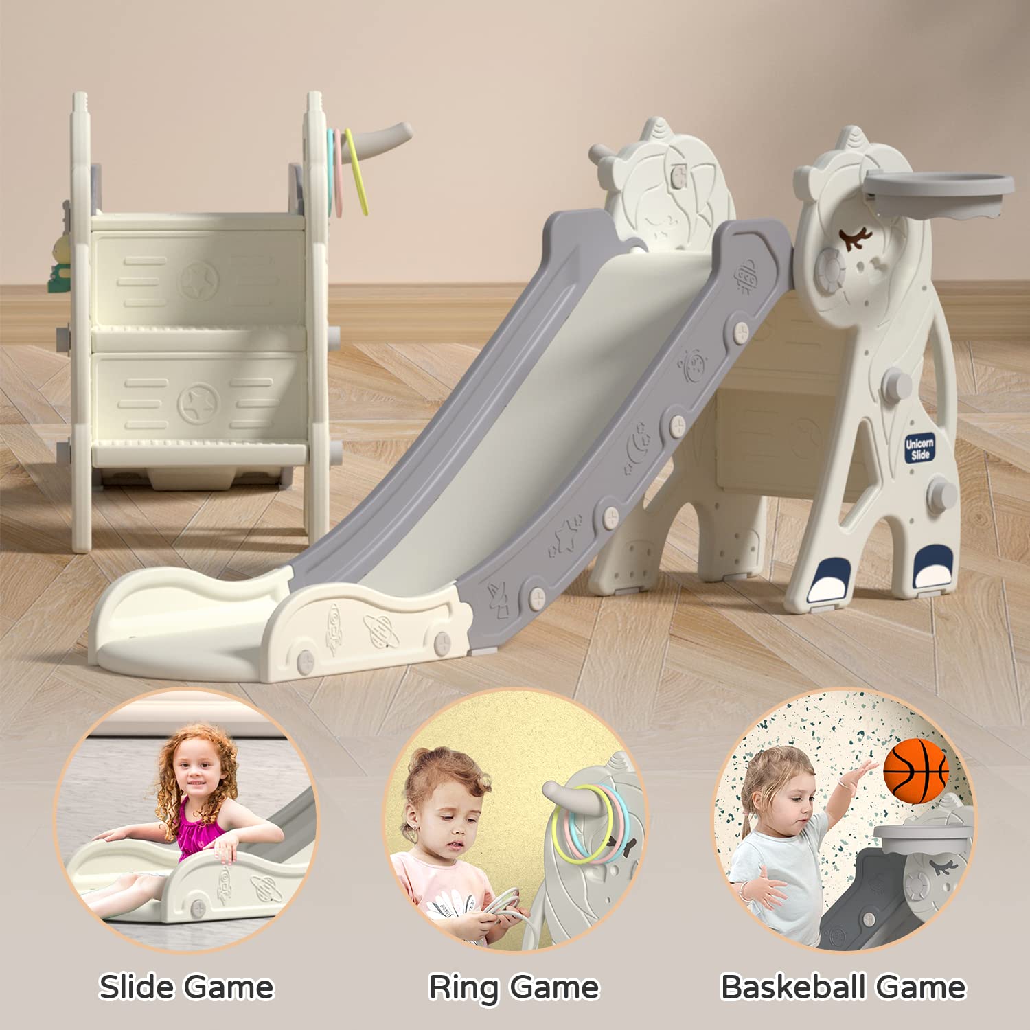 - ud83dude0dMultifunctional Toddler Slides: Children's slides with basketball hoop games and with music toy. Let children experience a variety of fun