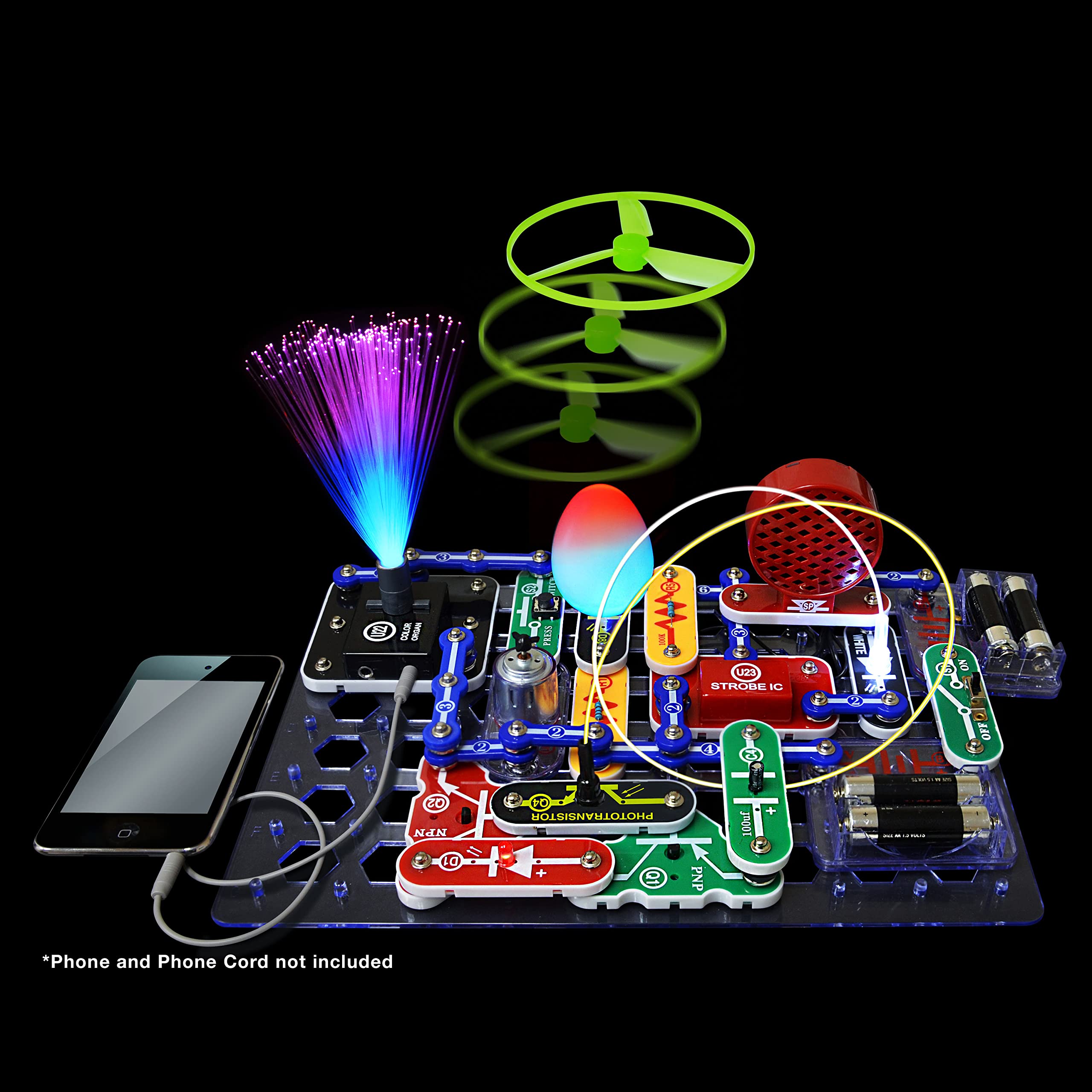 - PROJECTS THEY'LL LOVE: So many fun electric-powered projects you can build and play! Build over 175 exciting projects with included 55 parts that come together in a snap! Build your own light show using fiber optics and attach your smartphone to watch your light change to the beat of your music! Create an amazing spinning pattern from your newly built strobe light!