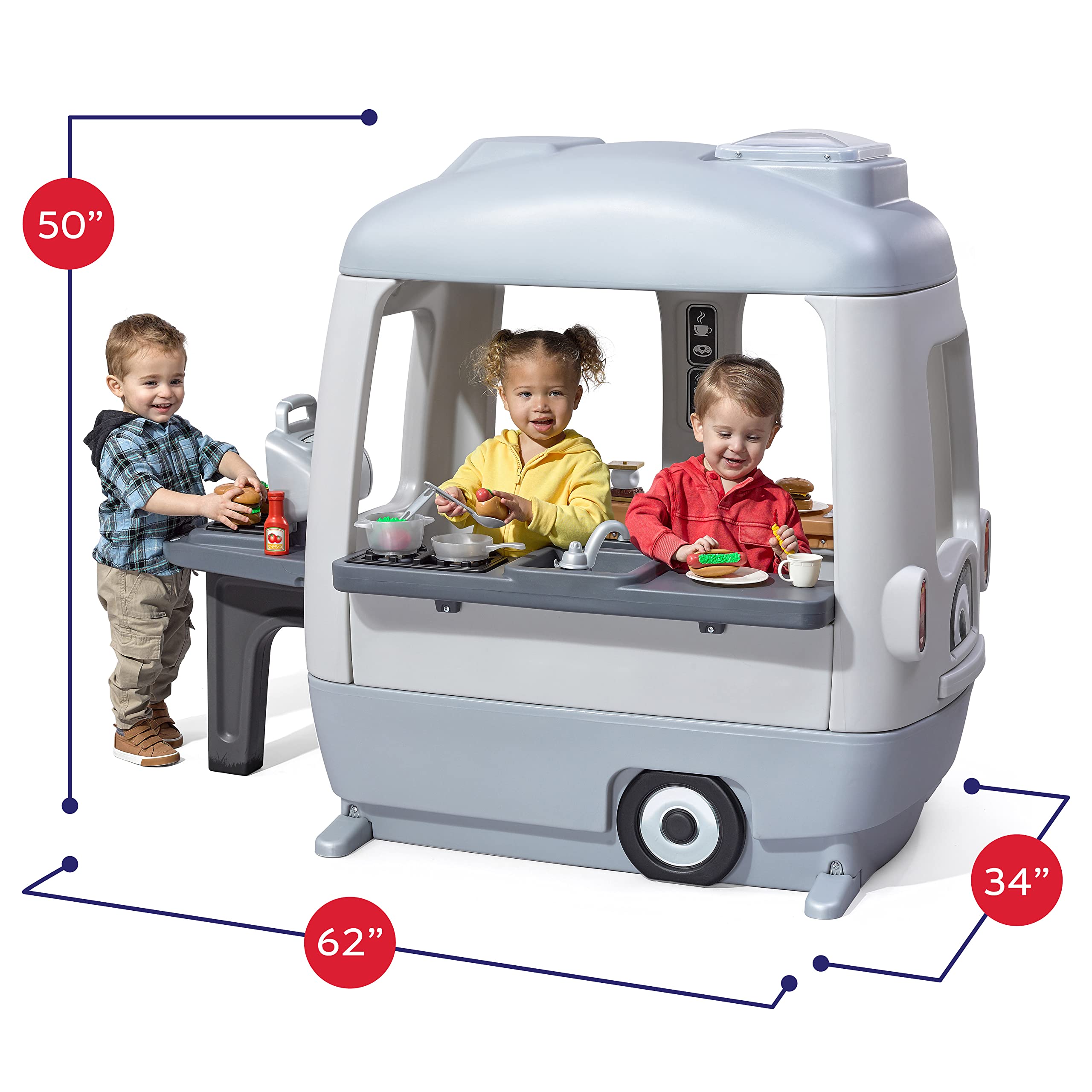 - LEARN & PLAY: Indoor or outdoor camper playhouse, toy camper will engage your kids imagination, pretend camping, food trucks, and restaurant fun