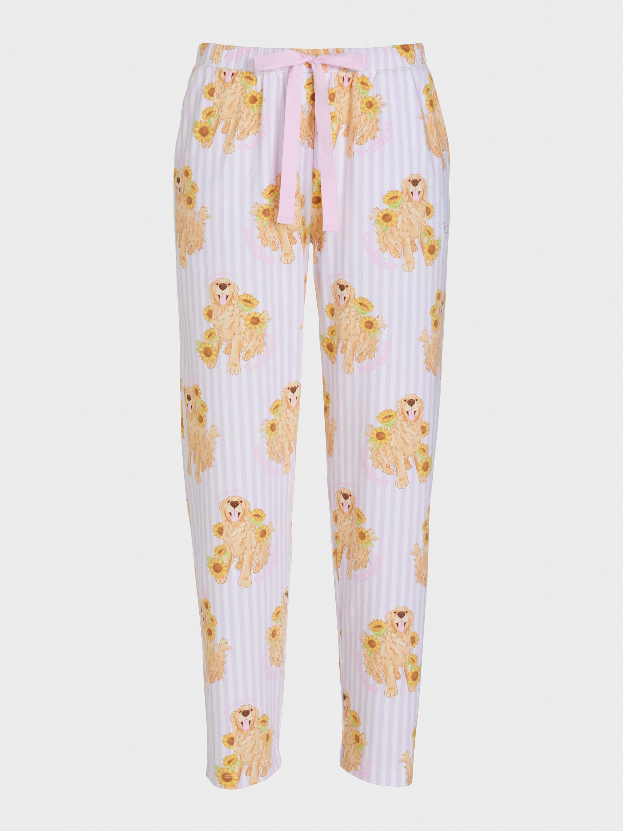 Sunshine, belly rubs and rainbows... isn't that how the song goes? These adorable women's pants feature an all-over striped golden retriever print, and pair best with the matching tee - a perfect gift for any goldie lover.