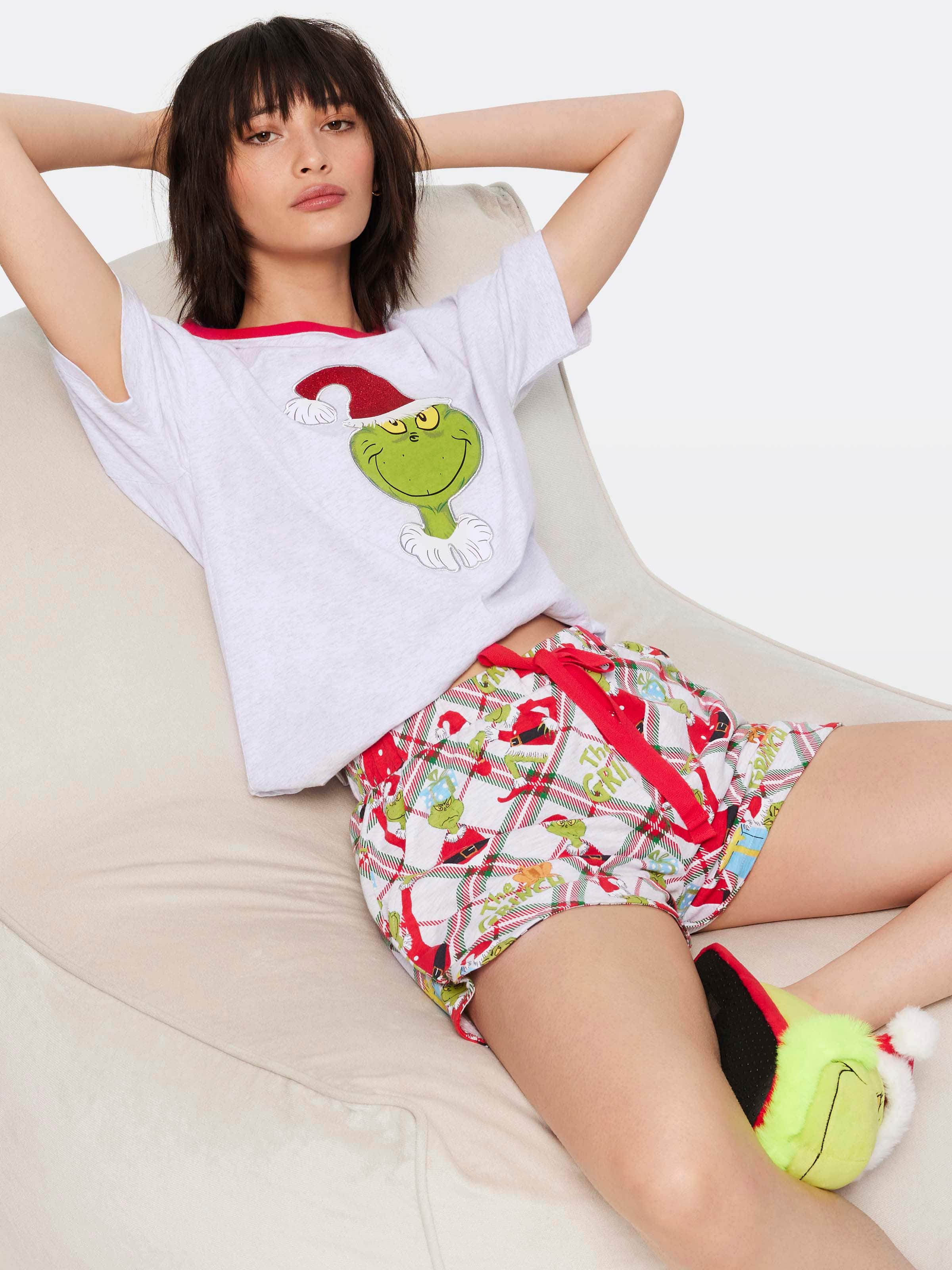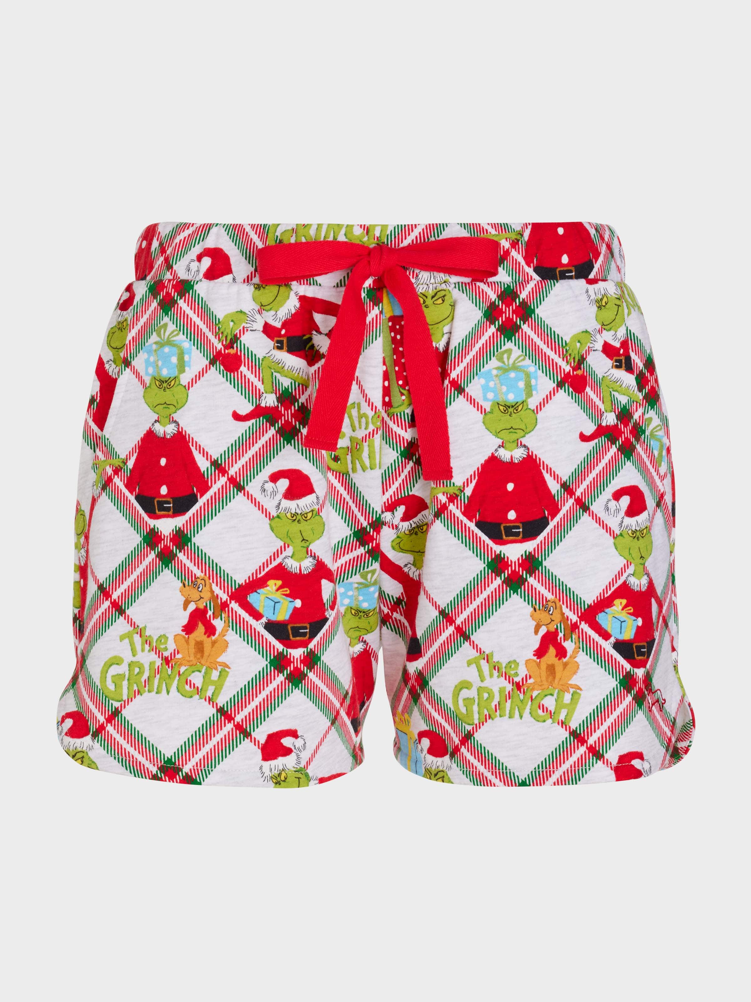 You'll be green with envy if you miss these! Our The Grinch PJ short features a longer length and all over print, designed by our in house graphics team. Complete the look with our matching The Grinch tee and slippers.?